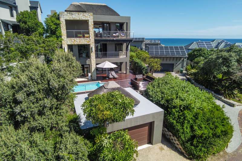 Experience the epitome of coastal living with this stunning 4-bedroom, 3-level home, offering unparalleled sea views and luxurious amenities. Nestled within the lush Wilderness Garden Estate, this property combines privacy, elegance, and a touch of nature’s beauty. Ground Level: Outdoor Features: Sparkling pool, deck, outdoor braai area, and fire pit Entertainment: Bar, wine cellar, and entertainment area with stacker doors leading to the deck Guest Accommodation: Spacious guest bedroom with a full en-suite bathroom Second Floor: Bedrooms: 3 large, en-suite bedrooms with built-in cupboards Main Bedroom: Features spectacular ocean views, private patio Additional Bedroom: Also offers ocean views, private patio Third Bedroom: North-facing with a private balcony overlooking lush gardens Additional Spaces: Open-plan study and guest toilet Upper Level: Living Areas: Open-plan lounge, dining room, and sunroom with 180-degree ocean views Kitchen: Well-planned with ample cupboard space, separate scullery/laundry, and spectacular cooking views Dining Area: Leads to a spacious balcony for outdoor dining and relaxation Estate has 24 hour security with private beach access controlled by security tags. Walking distance to serene, unspoilt Wilderness beach. Close to Wilderness Village with restaurants, cafes, and various outdoor activities (hiking, paragliding, canoeing, surfing) 20 minutes from George Airport Backup Power: 8.8kw inverter, 10kva battery, and solar panels installed. Call to have the opportunity to make this your Family home or holiday retreat!