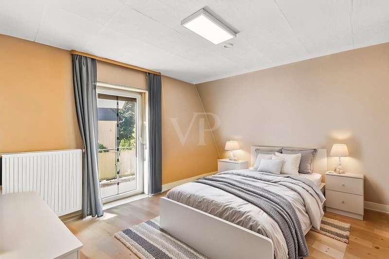Welcome to this charming detached house, which offers ideal conditions for families with a living space of approx. 125 m² on a plot of approx. 436 m². Built in 1929, the house combines the charm of times gone by with modern living comfort and was last extensively modernized in 2021: The roof, garage, façade and the heating system in the basement were renewed - ensuring that the building is well maintained and retains its value in the long term. Access to the house is via a well-kept inner courtyard, which offers space for two parking spaces. There is also a garage with a renovated roof and façade, providing secure and weather-protected parking. On the first floor, you will find a bright, open-plan living area with kitchen and dining area, which is given a particularly inviting atmosphere by a fireplace. A master bedroom with its own bathroom and a guest WC complete the space on this level. Upstairs there are three children's bedrooms - two of which are interconnected - and another bathroom. The attic offers practical storage space, while the basement provides additional space for supplies, hobbies or individual uses and houses the modern heating system. The outdoor area is impressive across the board: the spacious garden with well-tended lawn, pavilion and garden shed is ideal for playing, relaxing and socializing with family and friends. The courtyard also offers space for two additional vehicles. This detached house not only offers spacious rooms and a light-flooded living concept, but also a home where children can flourish and the whole family can feel completely at ease. Arrange a viewing appointment and see the benefits of this special home for yourself.