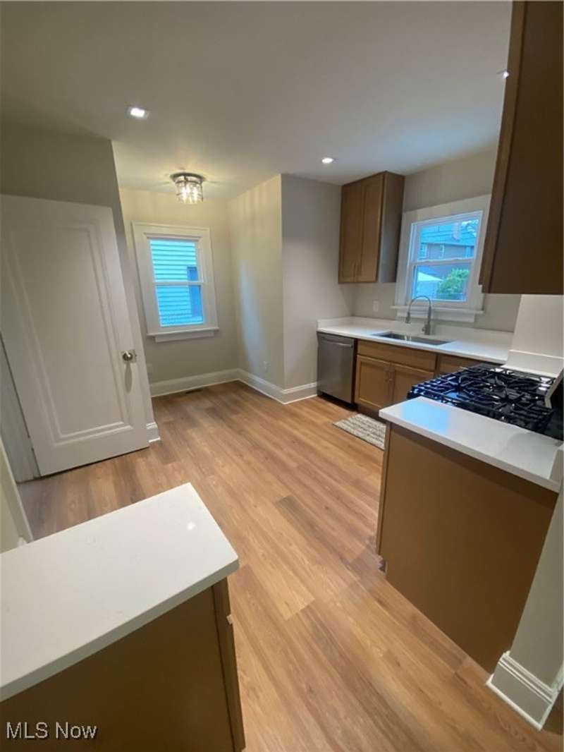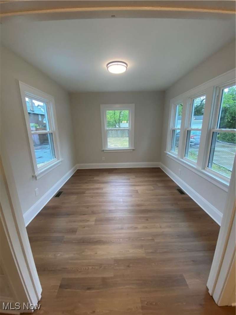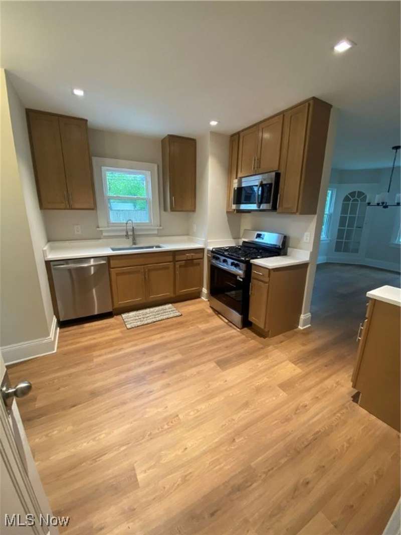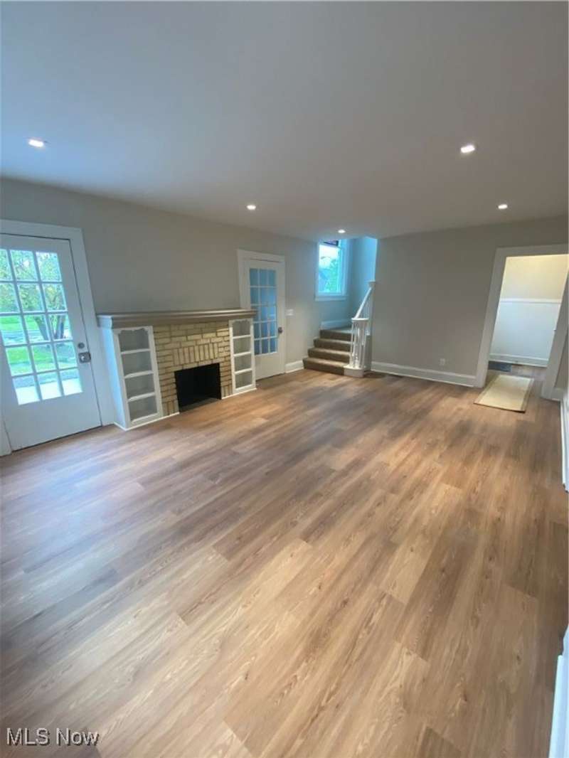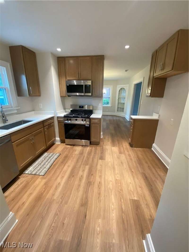 What an amazing house it is. Inside you walk into the enclosed foyer with coat closet. The living room is bright and expansive with a gas fireplace with brick surround and mantel with shelving flanking it as well as access to the front patio. The formal dining room is light filled and perfect for family meals with 2 glass front display cabinets. More open space includes the family/sun/flex space perfect for expanding entertainment. The kitchen is pristine with an eat-in space overlooking the back yard, quartz counters, cool light brown cabinetry, with soft close features that matches the hardwood floors throughout the first floor, all stainless steel appliances including dishwasher, stove with 5 burners, refrigerator and microwave. Wait till you see the modern, square lighting that brightens this level. On the second floor, are 3 bedrooms. One bedroom has access to a small balcony. Through another bedroom is access to the 3rd floor which could be another bedroom or storage or office. The bathroom is very modern with ultra modern fixtures and stylish design, so is the half bath on the first floor. The lower level you'll find the laundry room and newer mechanicals including updated electrical and space for entertaining on the other side. Modest grassy back yard is perfect for children or pets and there's a 2 car garage. The neighborhood offers several amenities to walk to like Schools, parks, restaurants and shopping. Short drive east to the freeways or west to University Circle and Downtown Cleveland. Come, make this your new home.