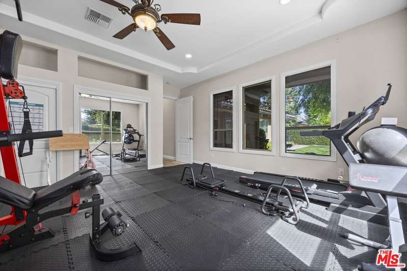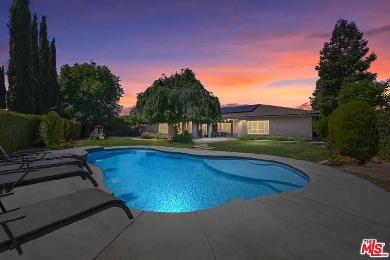 Experience luxury living at 2206 Riddle Valley Drive, a stunning 5-bedroom, 3-bath residence located in one of Bakersfield's most prestigious guard-gated communities. Set on a spacious 14,000 sq. ft. lot, this beautifully appointed home offers elegance, privacy, and comfort in the heart of Grand Island at Seven Oaks. Enjoy resort-style living with a newly installed pool and expansive backyard perfect for relaxing or entertaining. Inside, you'll find plantation shutters throughout, high ceilings, and an open-concept layout designed for modern living. One of the five bedrooms is oversized and currently set up as a fully equipped home gym. The grand entryway features an 11-foot custom iron front door, making a dramatic first impression. The spacious primary suite includes a luxurious en-suite bath and a walk-in closet that feels like its own room. Additional highlights include owned solar, stylish finishes, and a flexible layout ideal for families or professionals seeking elevated living. This is a rare opportunity to live in one of Bakersfield's most sought-after neighborhoods.
