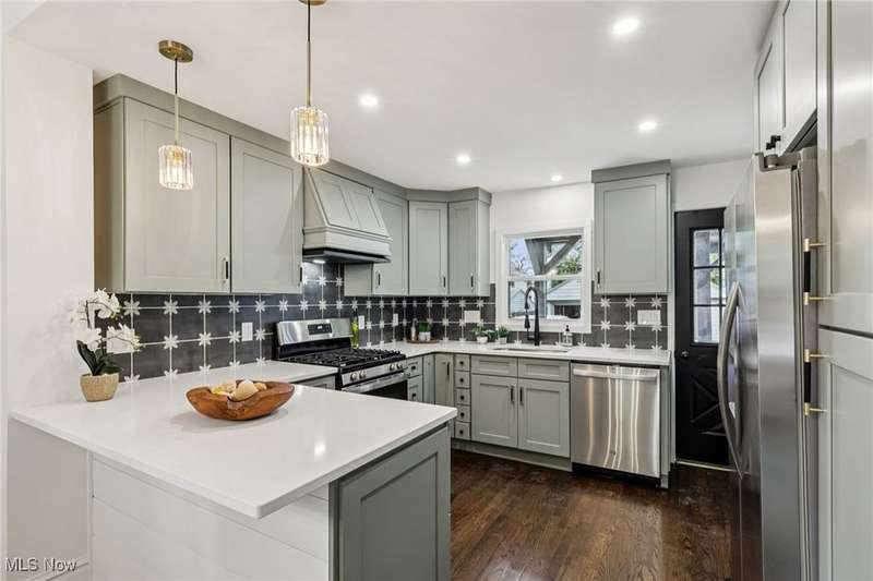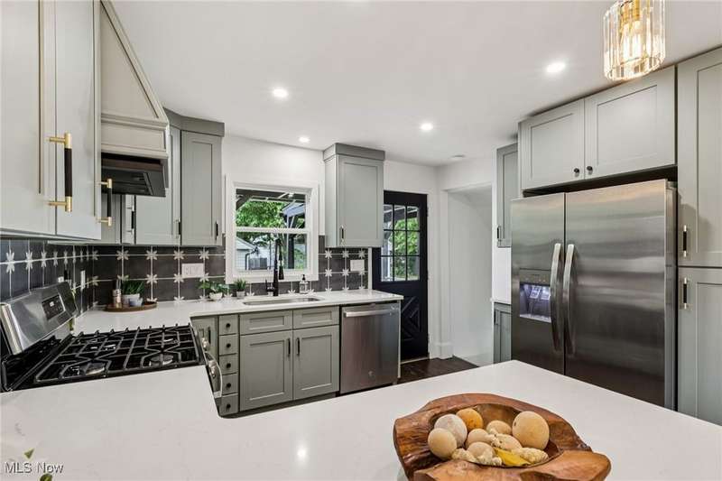 Welcome home to 14428 Delaware Ave in the heart of Lakewood! This beautifully updated colonial offers 1,352 square feet of stylish above ground living space, including a finished third floor perfect for a fourth bedroom, home office, or bonus room. Step inside to discover a luxury kitchen featuring Quartz countertops, breakfast peninsula, soft-close cabinetry, a gas range with hood, custom tile backsplash, and stainless-steel appliances ? the perfect space for cooking and entertaining. The main level showcases new wood flooring throughout, creating a warm and cohesive flow between living and dining areas, new lighting, and decorative fireplace. Upstairs, you'll find three comfortable bedrooms and an updated full bath, with the finished third floor providing flexible extra space for guests or a private retreat. The partially finished basement adds even more versatility, offering a second full bathroom and laundry area ? ideal for additional living or recreation space. Outside, enjoy classic Lakewood charm with a welcoming front porch, and custom covered deck off the back of the home which is perfect for entertaining, and great proximity to local shops, restaurants, and parks. Updates include new exterior paint, landscaping, AC and furnace, new updated plumbing, electrical, and hot water tank, updated bathrooms including a new full bath in the basement, brand new kitchen, new flooring throughout, AC split system on the 3rd floor, some new windows were added along with many updated details throughout both inside and out. If you are looking for a move-in ready home with all the updates this home is a must see.