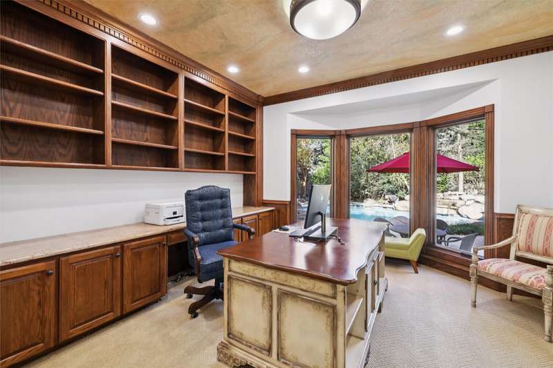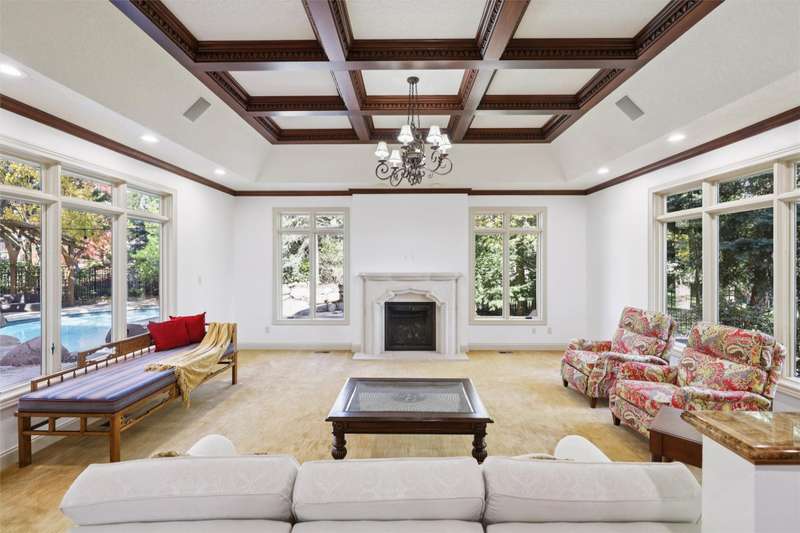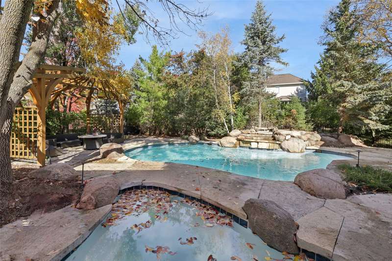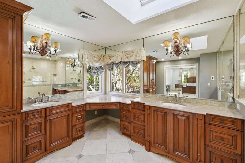 YOUR DREAM HOME AWAITS AN EXQUISITE LIVING IN A COVETED COMMUNITY !!!HEATED POOL & HOT TUB!! This home has a grand entrance with a beautiful foyer and elegantly carpeted stairs leading to the second floor. On the main level there is a formal dining room, formal living room with a gorgeous ceiling, Chef's delight kitchen features two center Islands, three dishwashers, Dacor luxury cooking range, spacious walk-in pantry, informal dining area, wet bar that is spacious to host all your Holiday Parties. The step-down family room with fireplace overlooks a serene resort like backyard. Custom designed pool with waterfall, pergola, and manicured landscapes create a cozy private entertainment space. Laundry on the main level has access to the backyard. A very sophisticated office has a pleasant view of the pool and the green space.Dream primary suite on the first floor has a Spa-like master bath, heated floors, dual vanities, skylight and huge walk-in closet. There are three more spacious, well-lit bedrooms on the second floor. Finished basement with second kitchen, wet bar, gym room, media space. Additional features include heated garage with epoxy floors, two furnaces, Central Vac, Security system, below the sink reverse osmosis water filter, permanent holiday lighting, landscape lighting, surround system inside and out. Close to the lake, Greenbelt, shopping, and golf course.You are not buying a house; you are investing in a luxurious lifestyle. A MUST SEE!!