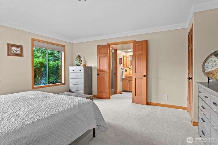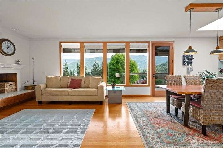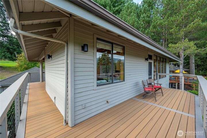 Meticulously maintained custom home in desirable Gate 1 of Sudden Valley, on a large lot adjacent to golf course! Enjoy mountain, lake & golf course views from the new wrap around composite deck & railing. Main floor boasts hardwood flooring w/ 9’ ceilings, large windows & majestic 8’ doors w/ hardwood trim throughout, cozy wood fireplace. Custom entertaining kitchen w/ solid wood cabinets. Access to deck from 3 glass doors, brings the outside in! Bedroom & guest bath on main. Lower level: spacious primary w/ large en suite & ample closet space, addtl bedrm w/ en suite, large laundry & mud room. Expansive courtyard, detached/insulated garage, landscaping includes raised beds & fenced area. Sudden Valley offers marina, fitness center & pool.