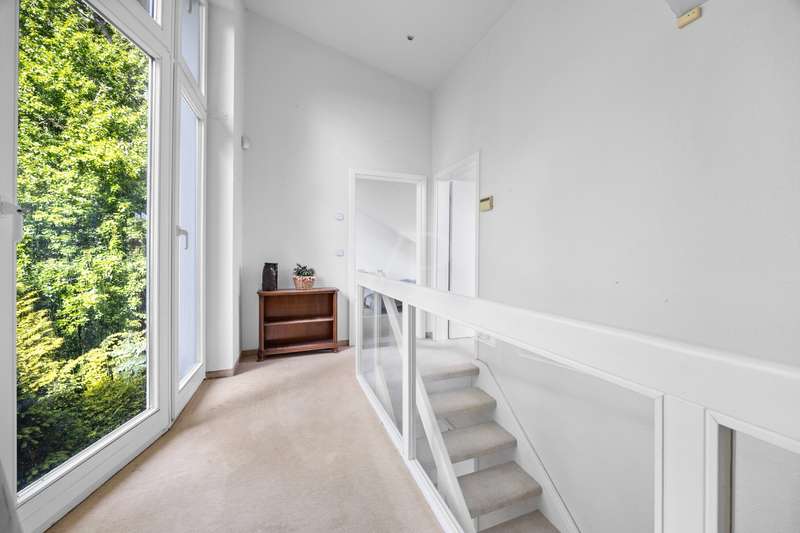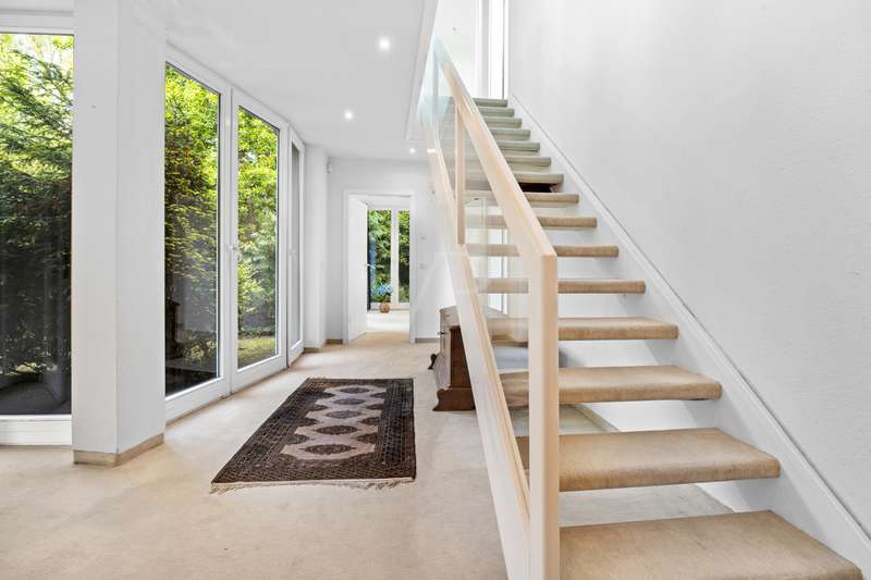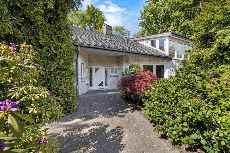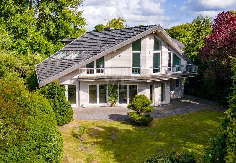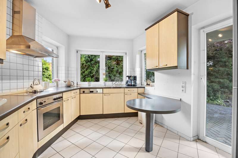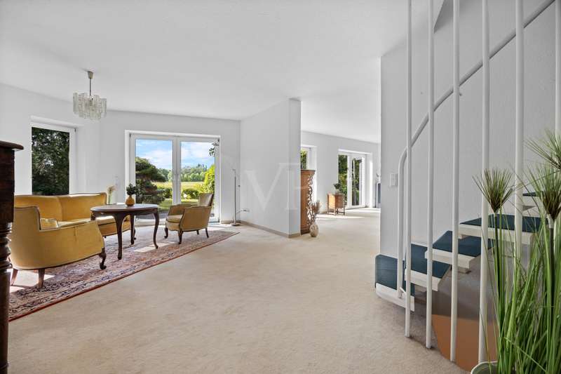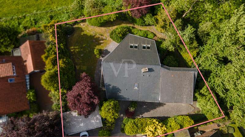Spacious detached house with versatile usage options in a quiet cul-de-sac location With approx. 289 m² of living space and a generous plot of 1,078 m², this exceptionally spacious detached house built in 1991 offers plenty of room for families who need a lot of space or for people who want to combine living and working under one roof. As soon as you enter the house, the first floor impresses with an inviting vestibule and checkroom area, which flows into the open-plan dining area. From here, you enter the adjoining, light-flooded living room, which creates a pleasant living atmosphere thanks to large floor-to-ceiling windows. The separate kitchen offers plenty of space for culinary delights. The first floor is rounded off by a guest WC and an extension with two versatile rooms - ideal as offices, bedrooms or hobby rooms - as well as an additional bathroom. A total of five children's rooms await you on the upper floor, each of which impresses with its brightness and spaciousness. Two well-equipped bathrooms offer comfort for the whole family. The master bedroom also has access to one of the two balconies, from which you can enjoy the view of the greenery. The house has a full basement and therefore offers plenty of storage space as well as other potential uses - be it as a hobby room, fitness area or for storage. The large garden with a cozy terrace invites you to relax, play or socialize. Here, family members of all ages will find their favorite outdoor spot. The offer is rounded off by a carport with two parking spaces and a practical storage room. The property is located in a quiet cul-de-sac and impresses with a particularly light-flooded living environment thanks to generous window areas in almost all rooms. A house that impresses with its size, flexibility and location - ideal for large families or anyone looking for a home with many design options. Arrange a viewing appointment and be inspired by the possibilities of this property.