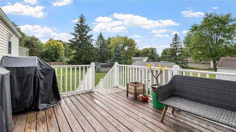 Welcome to 6558 Royal Parkway South. Built in 1979, this raised ranch home is waiting for its new owner. The upper level features an updated kitchen, living room, three bedrooms, and a full bath. The lower level includes a spacious family room prewired for a home theater system with in-ceiling speakers, a laundry room with a half bath, a clothes closet, and garage access. The home is equipped with wiring for TV (via antenna, no cable required) and internet in all living areas and bedrooms. Outside, you'll find a two-story deck and a fully fenced yard. The home sits on a beautiful corner lot with large shade trees in a quiet neighborhood. Next open house Nov 29th 11 am to 1pm. Correction on PCD the property is not in a flood zone. We have documentation from DEC.