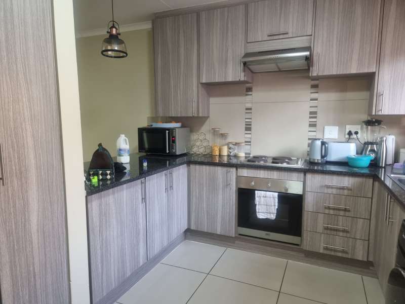Welcome to this beautifully maintained 3-bedroom, 2-bathroom townhouse, perfectly designed for modern living. With a generous 133 sqm of space, this home boasts an inviting open-plan lounge and kitchen featuring elegant granite countertops and a sleek undercounter oven—perfect for culinary enthusiasts. Enjoy a bright and airy lounge area that seamlessly flows into the kitchen, creating an ideal setting for family gatherings and entertaining friends. Stylish Kitchen: Cook and entertain in style with quality finishes and ample storage space. Double Garages: Benefit from the convenience of two secure garages, providing plenty of room for vehicles and additional storage. Outdoor Oasis: Step outside to a charming patio that overlooks a low-maintenance garden, perfect for relaxing or hosting weekend barbecues. Security Complex: Experience peace of mind in a secure environment, ensuring safety for you and your loved ones. This townhouse is not just a home; it's a lifestyle! Don’t miss the chance to make it yours. Schedule a viewing today and imagine your new beginning in this exceptional property!