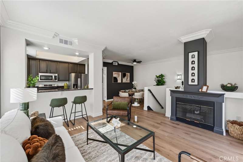 Located in the exclusive gated community of Summit Renaissance, this beautifully remodeled home offers an exceptional blend of comfort, style and modern convenience. Featuring brand new luxury plank flooring, fresh interior paint with designer colors, custom blinds, new electrical work, mostly new plumbing. All mechanical systems have been serviced and up to date. A spacious living area boasts soaring ceilings, a cozy fireplace, walk out balcony and plenty of natural light. The kitchen features granite countertops that include a breakfast bar, stainless steel appliances and beautifully finished cabinetry with plenty of storage. The spacious primary suite includes city lights views, an ensuite bathroom, double vanity sinks with granite countertops, and a generous walk in closet. Large plank flooring extends to all living areas and bedrooms which each feature custom built in closet organizers for convenient storage. Additional highlights include over-sized crown molding, new baseboards, interior full size laundry area, and a private two car garage with wall to wall custom cabinetry. Located within a desirable gated community with additional luxuries that include a beautiful pool and spa for relaxing or entertaining guests. Close to freeways, shopping, restaurants, parks, schools, hiking and biking trails and in one of Orange County's premiere communities!