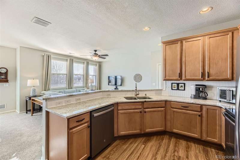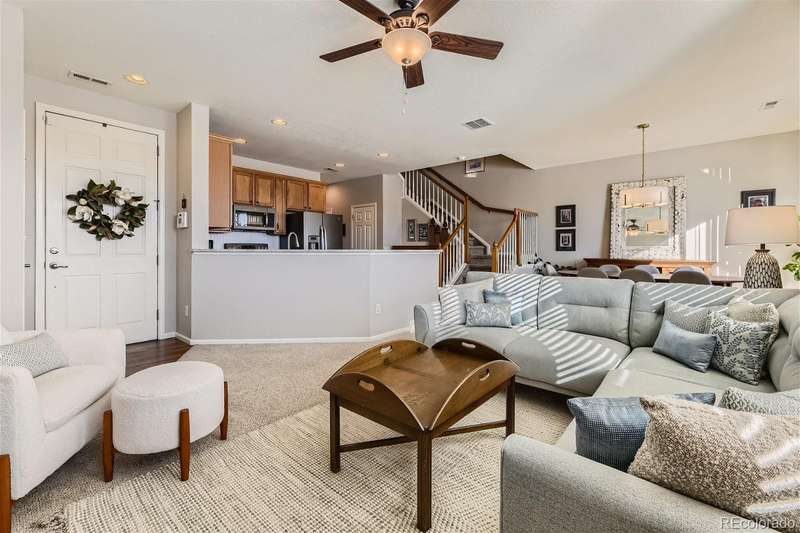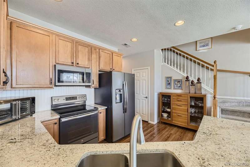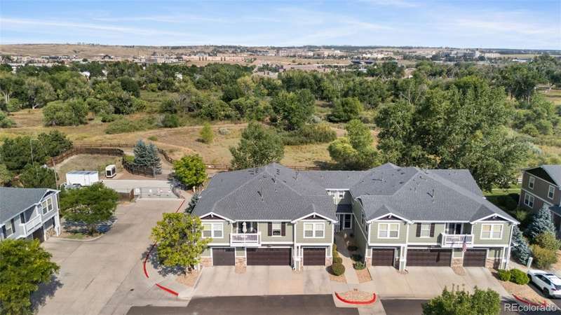 What matters most is Location! Location! Location! You can look no further for your perfect retreat. This is a truly unique opportunity to own in the absolute best spot in the community! Nestled at the quiet back corner, this spacious two-story townhome backs directly to pristine open space and the Cherry Creek Trail, offering peaceful greenbelt views, unrivaled privacy, peace, and quiet. Residents here love the serenity and rarely sell on this side of the complex, making this unit an exceptionally rare and unique find.Step inside and enjoy natural light-filled living spaces, an open floor plan, and breathtaking vistas from your main-floor gathering areas. The kitchen is a cooks dream, featuring beautiful granite countertops, 42 cabinets, sleek slate appliances, a walk-in pantry, and convenient main-level laundry. Upstairs, the primary suite overlooks the open space and trail, featuring a large walk-in closet and en-suite bath. Two additional bedrooms and a full bath provide ideal flexibility for an in-home office, guests, or family. Not to mention an oversized attached one-car garage. Enjoy outdoor Colorado living year-round on your private back patio with direct access to open space and trails. The HOA is incredibly well-managed and financially stable, with brand new roofs and gutters just completed and new road surfacing earlier this year; no major expenses coming up! HOA covers water, trash/recycling, sewer, snow removal, insurance, landscaping, and maintenance of grounds and structure, making this low-maintenance home even more enjoyable! Neighbors take pride in this close-knit, well-kept community. This is your chance to claim a home in the most coveted, quiet, and neighborly location in the complex. Opportunities like this dont come along often. Dont miss out!This is your chance to claim a home in the most coveted, quiet, and neighborly location in the complex. Opportunities like this dont come along often. Dont miss out!