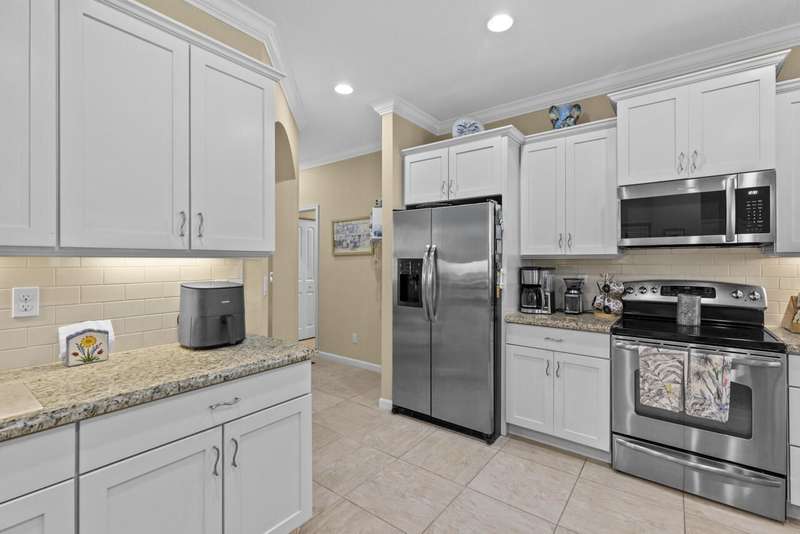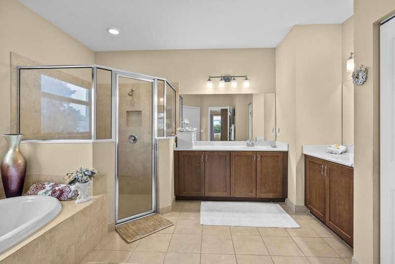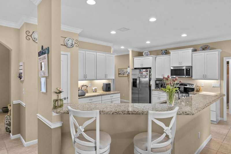 Absolutely stunning former model home built by DR Horton! This solid CBS residence features a classic barrel tile roof, brick paver driveway, showcasing timeless curb appeal. Offering 4 bedroom 2 baths and a spacious open-concept floor plan with split bedrooms this home is both elegant and functional. Enjoy modern fans and stylish light fixtures throughout. Along with a separate laundry room for added convenience. Step outside to your private oasis featuring a beautiful heated pool and spa-perfect for entertaining or relaxing year-round. The oversized 2+ Car Garage provides extra space for storage. Located in The Pines a desirable community offering a park, playground, half basketball court, picnic area, and a fitness trail idea for outdoor fun and staying active. Top Rated A+ School