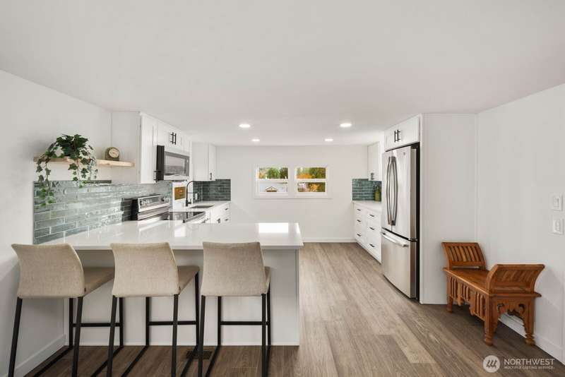 Experience modern living in this stunning 55+ fully renovated home in Bothell—just minutes from I-405 for easy commuting and access to local amenities. Every detail has been upgraded, featuring premium finishes, energy-efficient windows, new stainless steel appliances, luxury vinyl plank flooring, and custom cabinetry. Enjoy sleek new lighting, a refreshed bathroom, and a spacious kitchen designed for comfort and style. Outside, relax in your landscaped yard or entertain on your patio—this home truly boasts all the bells and whistles for turnkey living in a prime location.