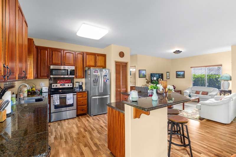 This three bedroom, two bath gem is the perfect family home with quality finishes including Koa cabinetry, granite counter tops and beautiful wood laminate flooring throughout. The home is being sold fully furnished with high end items including Mango and Teak furnishing pieces.
