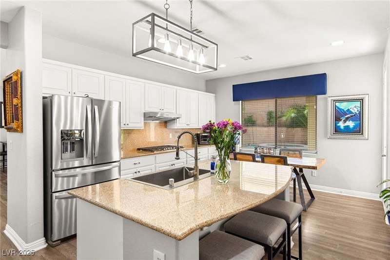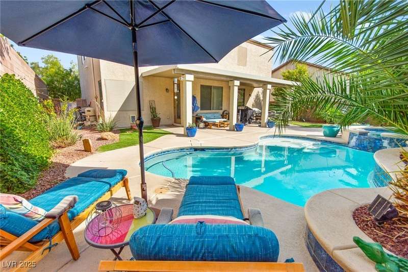 This beautiful Northwest home checks every box! Downstairs features upgraded laminate wood flooring and a sleek modern metal stair rail, complemented by stylish blinds, fixtures, and ceiling fans throughout. The spacious family room opens to a well-appointed island kitchen with granite counters, stainless steel appliances, and ample cabinet space. Upstairs, the oversized primary suite offers a relaxing en-suite bath, while a large loft provides flexible space for a home office, playroom, or second living area. A downstairs bedroom with a full bath is ideal for guests or multigenerational living. Step outside to your private backyard retreat with a sparkling pool, soothing spa, and covered patio—perfect for summer BBQs and entertaining. A 3-car garage adds convenience and storage. All this, just minutes from shopping, dining, and freeway access. Don’t miss the chance to call this move-in ready gem your new home!