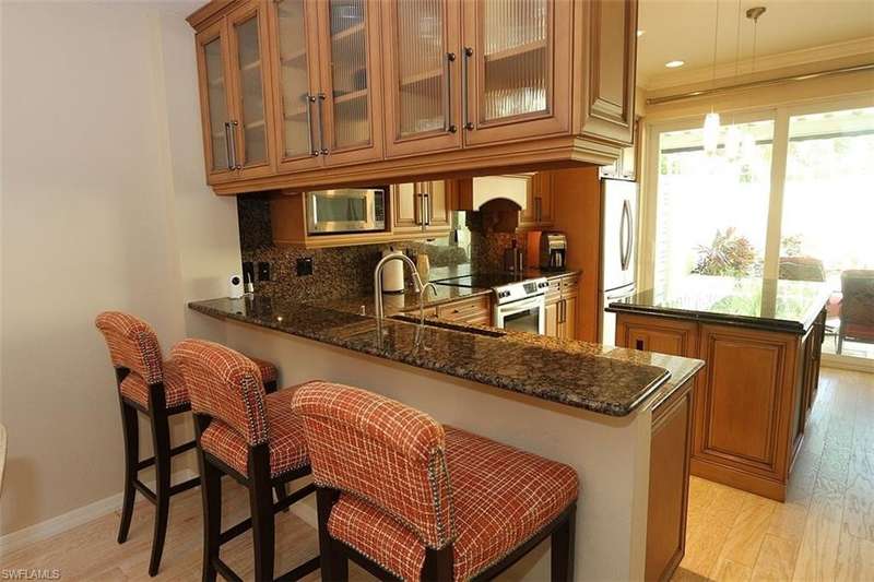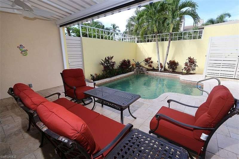 Fabulous multistory attached villa located right in the heart of Olde Naples! So close to everything this highly desirable neighborhood has to offer. Four stories of luxurious, yet comfortable, accommodations offer the best of Florida living. Numerous luxury appointments include all solid surface flooring throughout, soaring ceilings, granite kitchen countertops, stainless steel appliances plus much more. Separate living room/dining room combo and casual family room plus a top floor den/office equipped with a desk station. Sofa and reclining chair in the formal living room. The family room offers a sofa, reclining chair and TV. The wood dining room table seats six plus there are three stools at the breakfast bar. A covered screened lanai located just off the kitchen and family room area leads directly to the private courtyard boasting its own heated splash soaking pool. Every creature comfort has been provided to make a tenant's stay more convenient and enjoyable. Conveniently located just five blocks to the beach and six blocks to 5th Avenue South shopping & dining district and three blocks to chic 3rd Street South offering fine shopping, dining and entertainment.