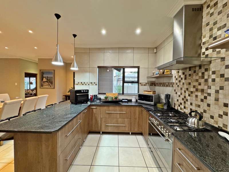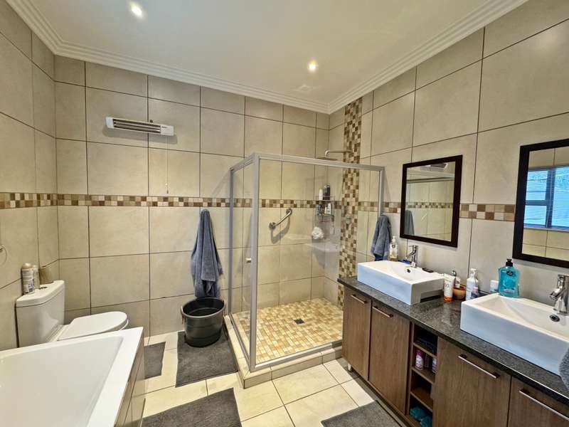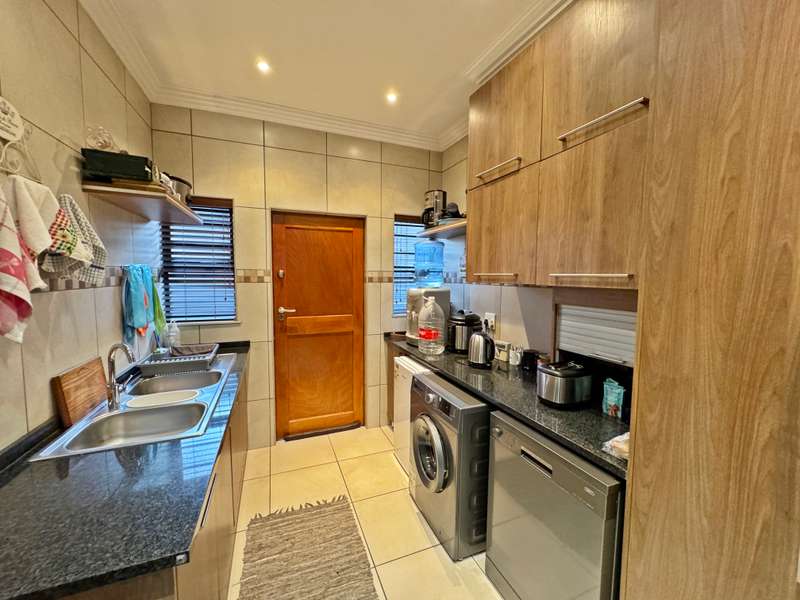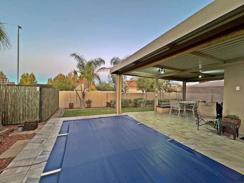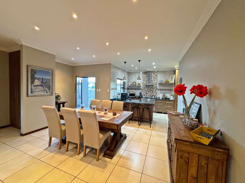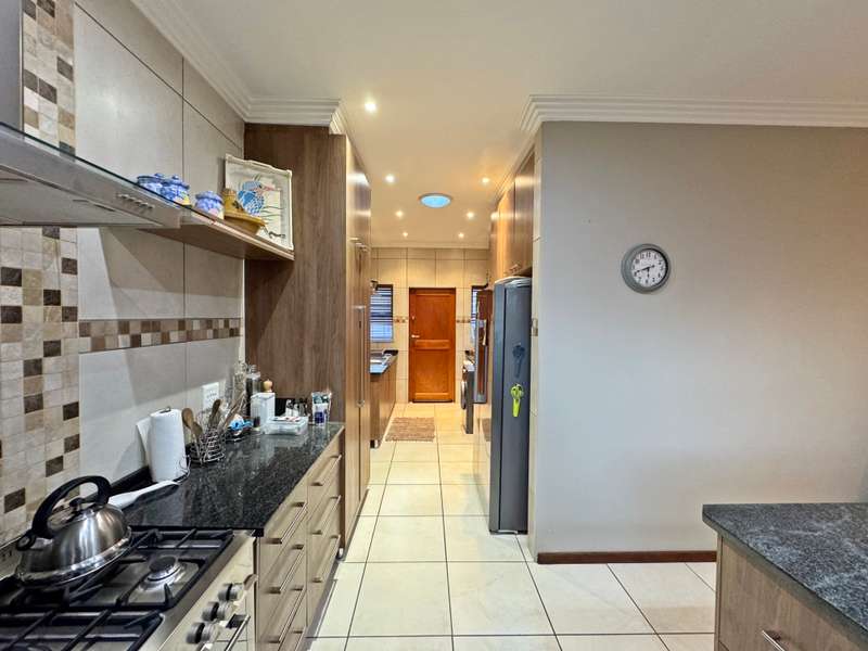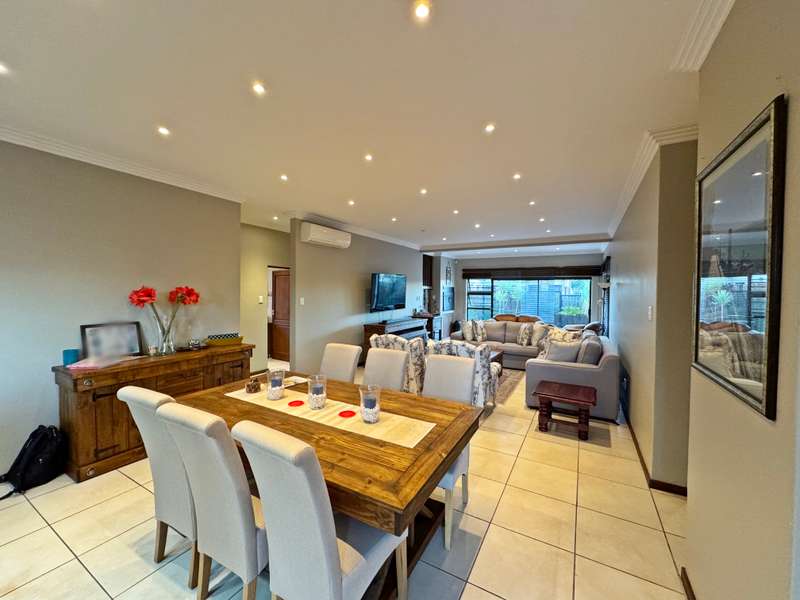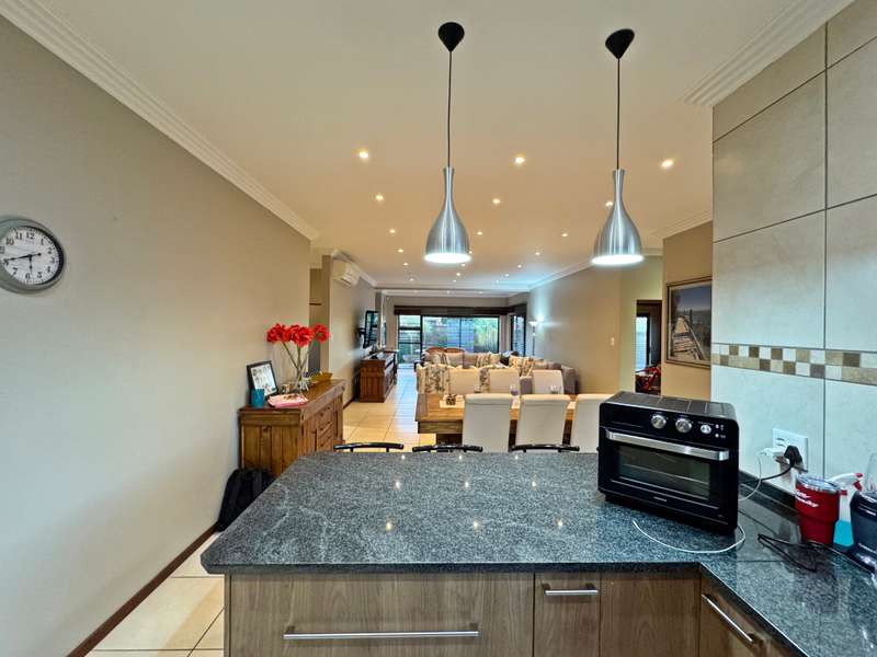 This modern and spacious 3-bedroom, 2-bathroom duet is perfectly situated in the desirable suburb of Shellyvale. Designed for both comfort and contemporary living, the home offers an inviting open-plan layout that seamlessly connects the living, dining, and kitchen areas. The kitchen is a chef’s dream, featuring sleek granite countertops, a gas stove, and a separate scullery for added convenience. The open-plan living area includes a built-in braai, ideal for entertaining, with sliding doors that open onto a covered patio and sparkling splash pool—perfect for warm summer days. All bedrooms are generously sized with built-in cupboards, while the master suite is a true retreat, offering ample space, a sliding door leading to the pool area, and a luxurious full en-suite bathroom complete with a his-and-hers vanity. The low-maintenance garden provides just the right amount of space for children to play. Additional outdoor features include a tool shed for storage and a domestic bathroom for convenience. A double garage and additional netted carport ensure ample parking. This property is equipped with excellent sustainability features, including a water tank with pump and a robust solar power system featuring an 8kW inverter, a 10kW battery, and 8 solar panels—offering significant energy efficiency and reduced utility costs. Don’t miss this opportunity to own a beautifully appointed home in a prime location!