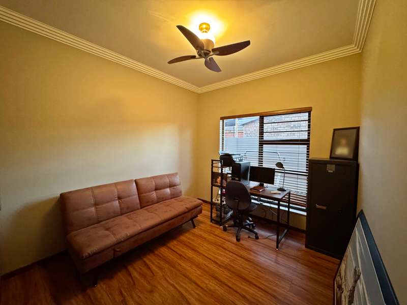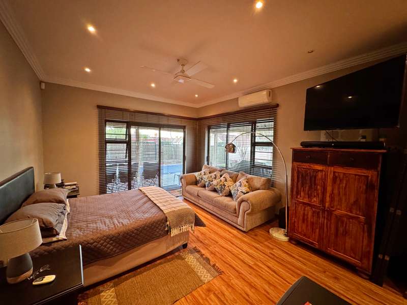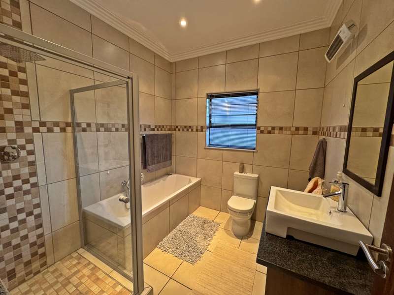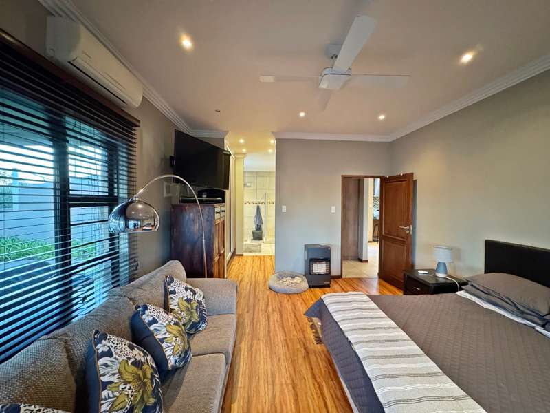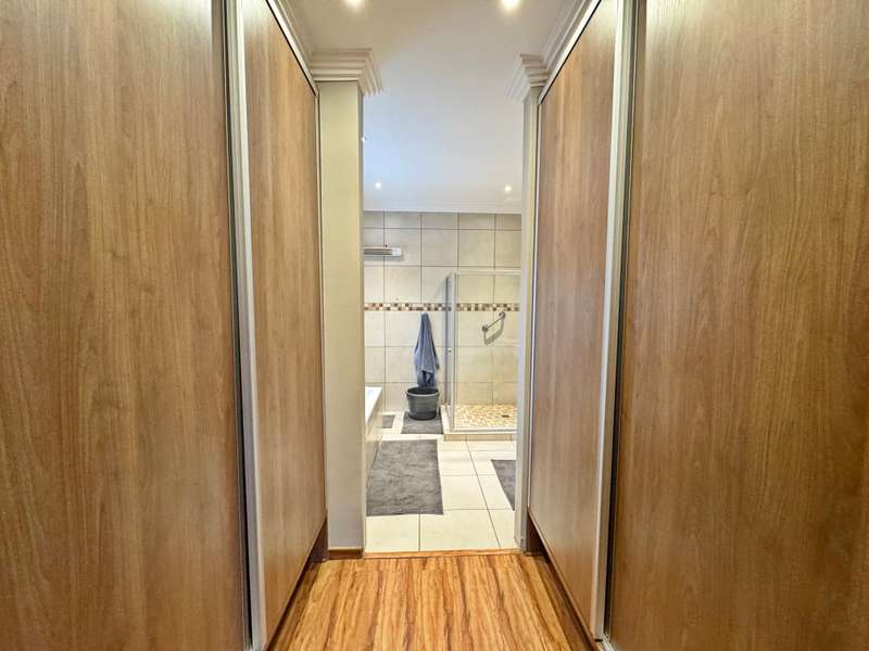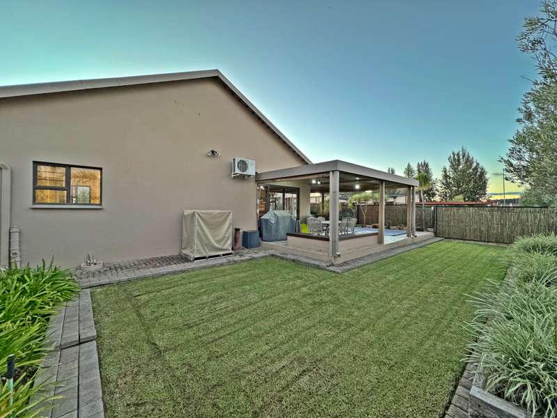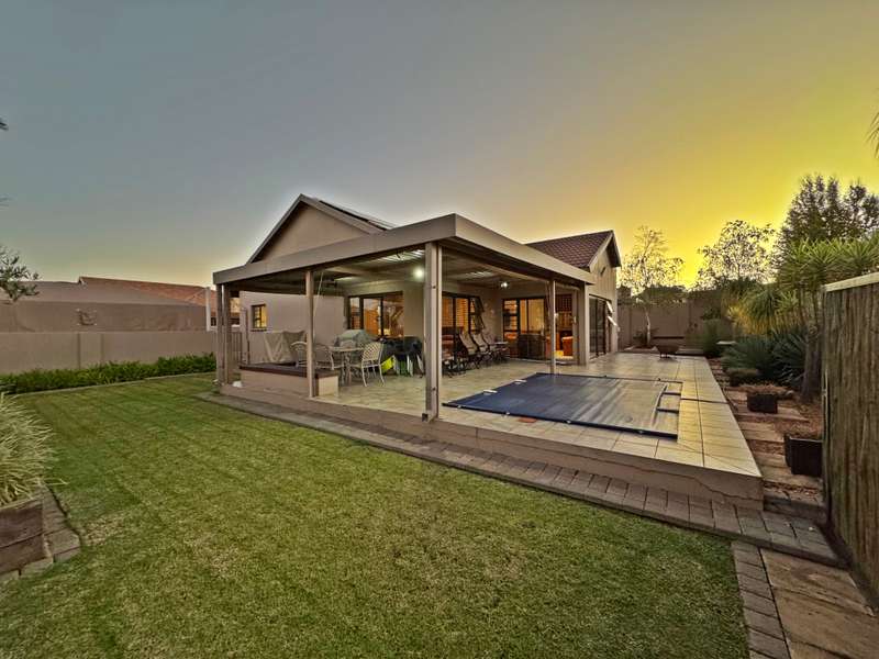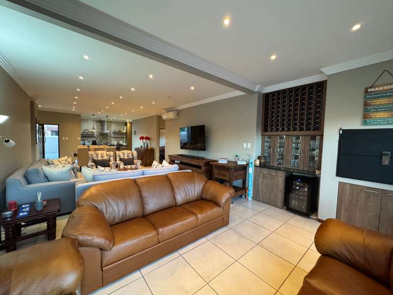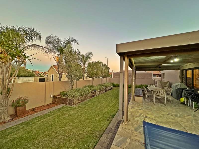 This modern and spacious 3-bedroom, 2-bathroom duet is perfectly situated in the desirable suburb of Shellyvale. Designed for both comfort and contemporary living, the home offers an inviting open-plan layout that seamlessly connects the living, dining, and kitchen areas. The kitchen is a chef’s dream, featuring sleek granite countertops, a gas stove, and a separate scullery for added convenience. The open-plan living area includes a built-in braai, ideal for entertaining, with sliding doors that open onto a covered patio and sparkling splash pool—perfect for warm summer days. All bedrooms are generously sized with built-in cupboards, while the master suite is a true retreat, offering ample space, a sliding door leading to the pool area, and a luxurious full en-suite bathroom complete with a his-and-hers vanity. The low-maintenance garden provides just the right amount of space for children to play. Additional outdoor features include a tool shed for storage and a domestic bathroom for convenience. A double garage and additional netted carport ensure ample parking. This property is equipped with excellent sustainability features, including a water tank with pump and a robust solar power system featuring an 8kW inverter, a 10kW battery, and 8 solar panels—offering significant energy efficiency and reduced utility costs. Don’t miss this opportunity to own a beautifully appointed home in a prime location!