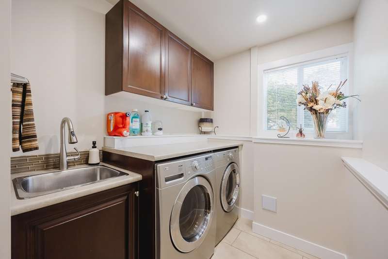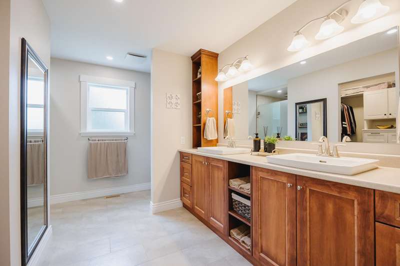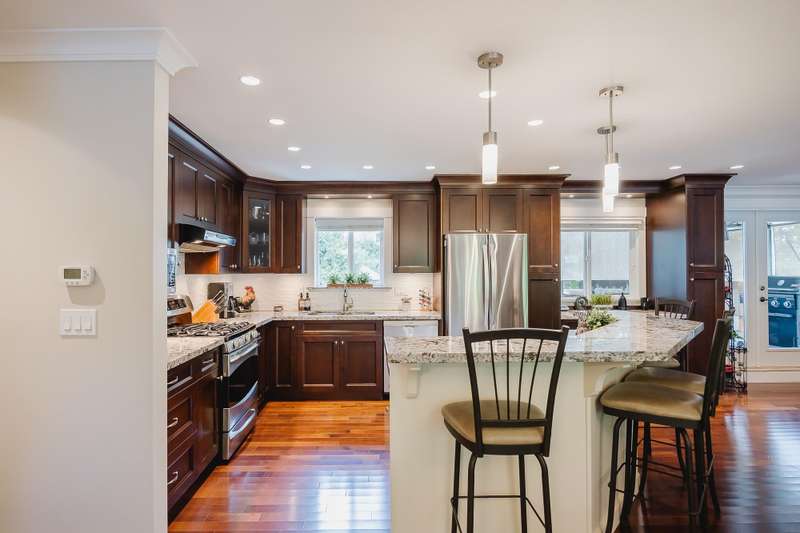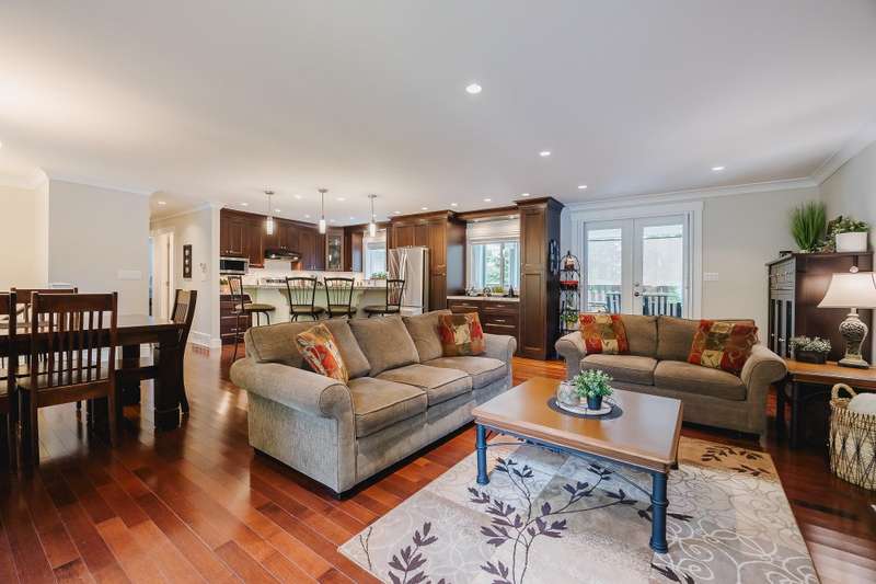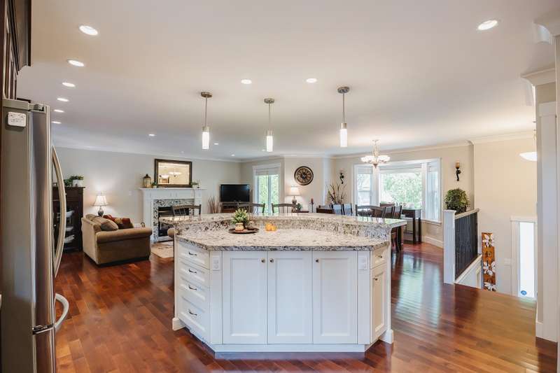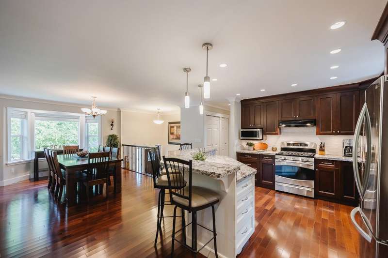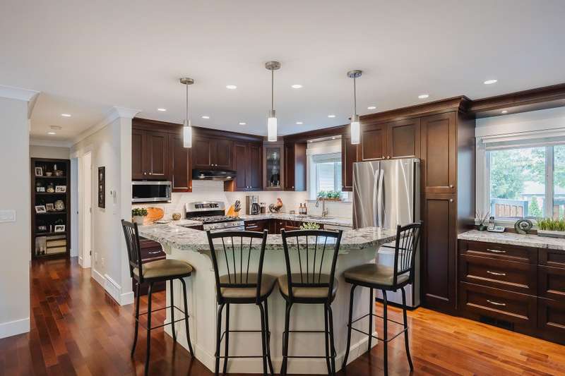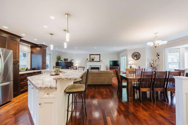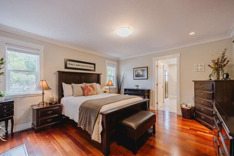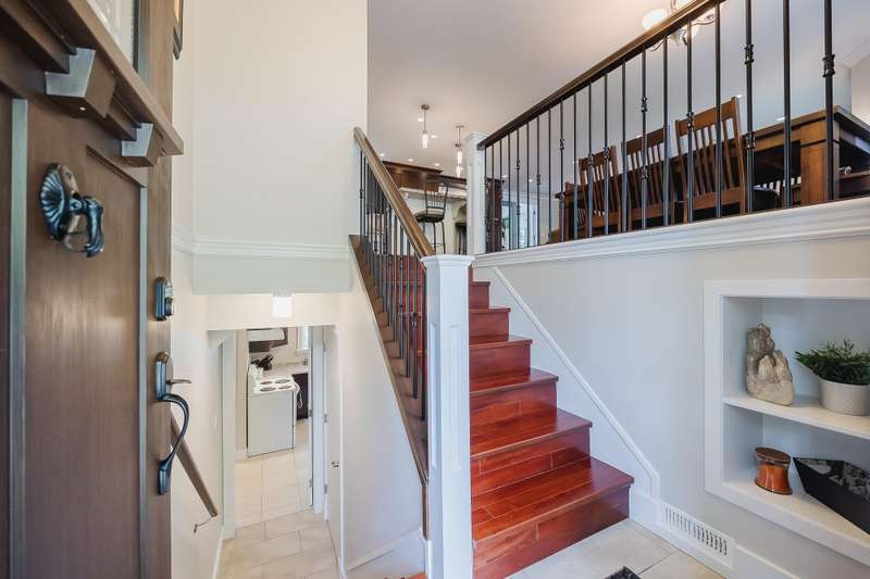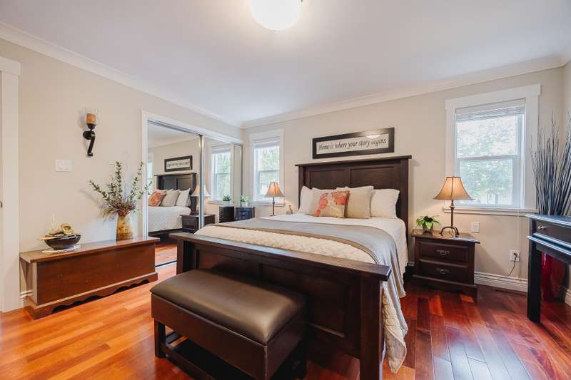 Gorgeous totally renovated 5 bedroom home with great room concept on both floors. Quality craftsman features: 3/4'' brazilian hardwood on the entire upper floor, all 3 bathrooms have heated tile floors including oversized ensuite shower, gourmet custom maple kitchen with granite counter tops, topped off with high end stainless steel appliance pkg, LED puck lighting, & a huge family sized island! Hot water on demand, gutters all have leaf filter, huge covered deck off kitchen w/gas BBQ, all garden beds front and back have automatic sprinkler system, work shop & garage are insulated & heated, soffit plugs are on built in timer, Exterior recently painted, extensive use of pavers. Huge backyard. This home is move in ready! Attention to detail with excellent craftsmanship & millwork. A 10!