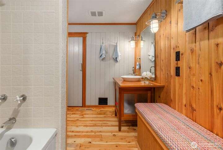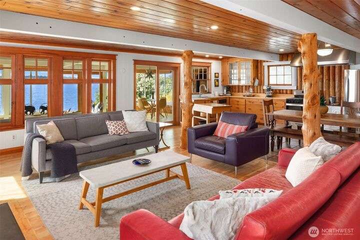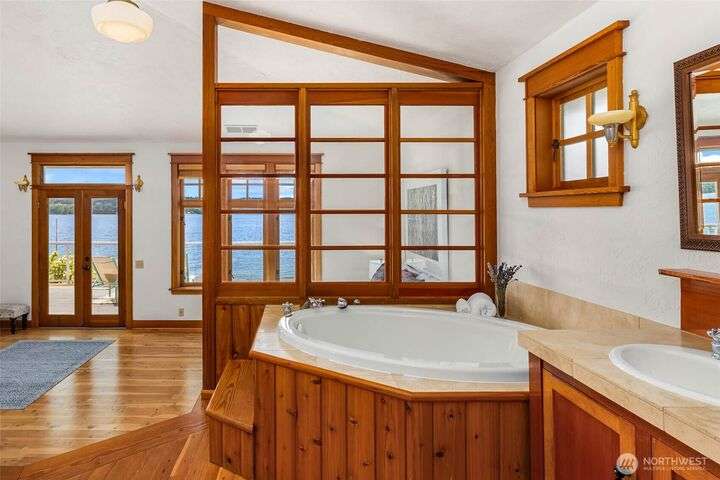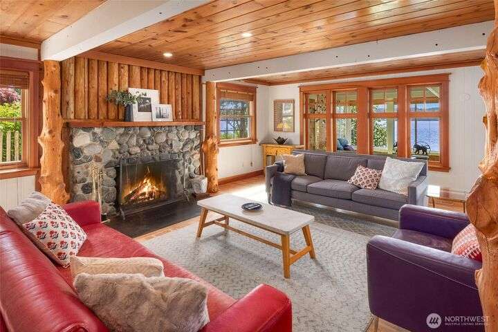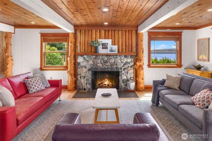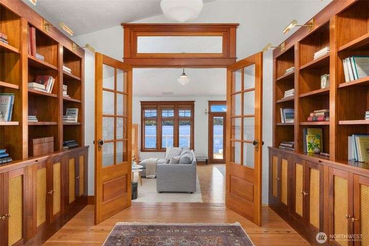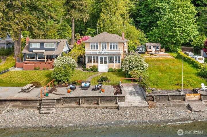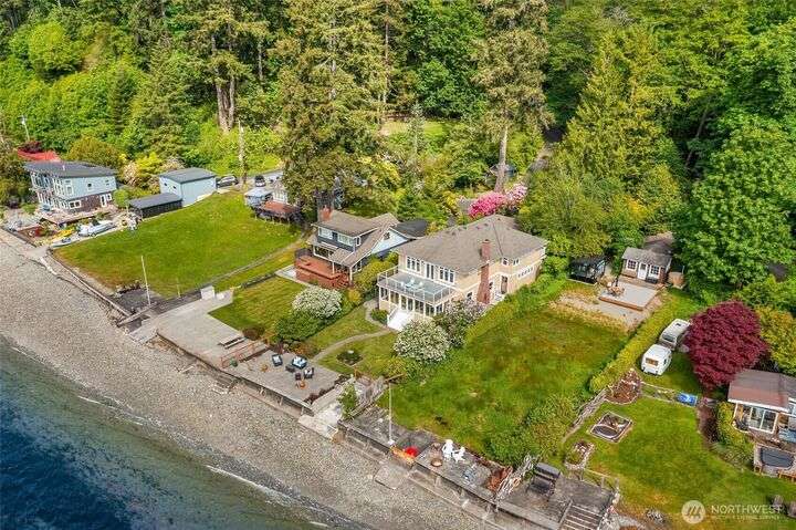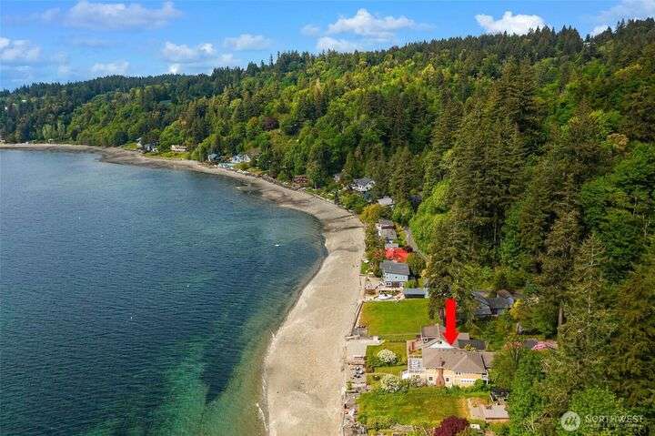 Nestled on a tranquil sandy cove along the scenic west side that’s just minutes to the Tacoma ferry, this exquisite low-bank waterfront property offers a rare blend of craftsmanship, charm, and natural beauty—with peekaboo views of the Olympics. Renovated by a master woodworker, the home features rich fir floors, a custom walnut library, and striking reclaimed fir beams that add timeless character throughout. A 2-car garage, and private guest suite with its own private bath complete this extraordinary home. Experience the serenity of waterfront living—this exceptional retreat is waiting to welcome you home!