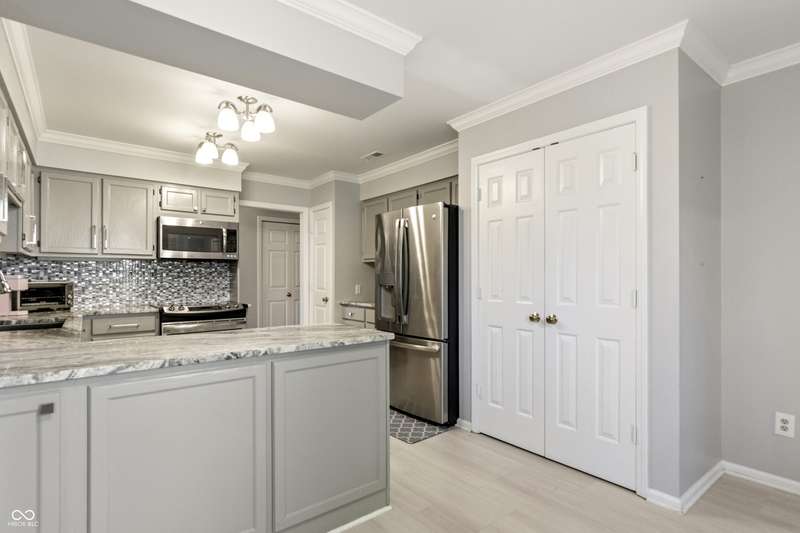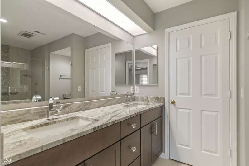 Move in ready large end-unit single level condo with three generously sized bedrooms in sought-after Roundtree subdivision. This home features a fully renovated kitchen with beautiful quartz counters, fully renovated primary bathroom, and many replaced windows. Plenty of room to spread out and host family gatherings between the spacious living room with cozy gas fireplace, formal dining room, bright sun room, and breakfast nook off the large kitchen. Condo has three designated guest parking spots. Low maintenance community takes care of all lawn care and exterior maintenance so you don't have to. Relax with morning coffee in your serene private courtyard. Neighborhood amenities include a pool and clubhouse. Unbeatable location close to local restaurants, shopping, amenities, and all that Indianapolis's North Side has to offer.
