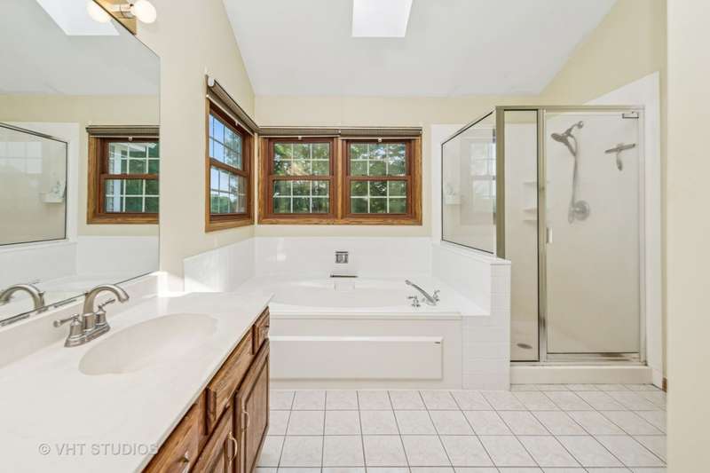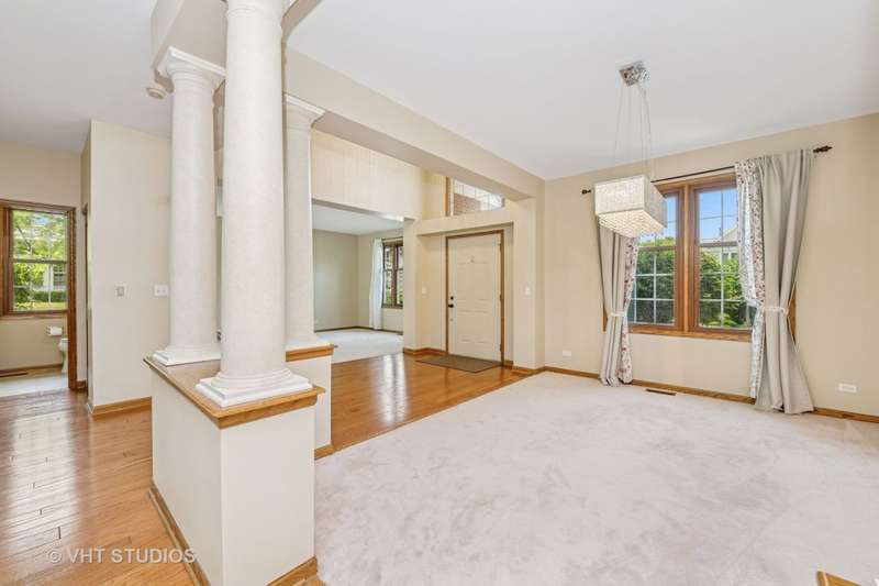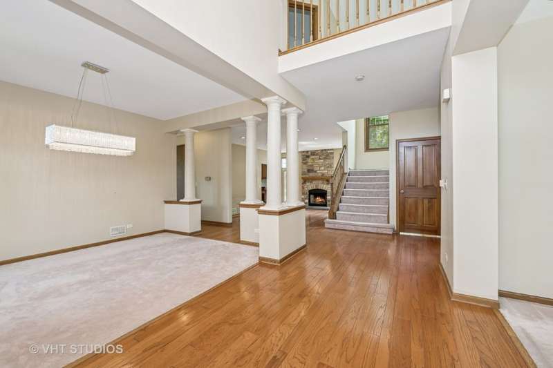 Welcome to 1266 Thorndale Ln in the sought-after Chestnut Corners neighborhood of Lake Zurich! This stunning Canterbury model offers 4 bedrooms, 2.5 baths, and so many delightful surprises around every corner. From the moment you step inside, you're greeted by soaring ceilings, tons of natural light, and a spacious layout designed for comfortable living and effortless entertaining. The step-down family room is a showstopper with its floor-to-ceiling fireplace and wall of windows overlooking the yard. Need a quiet spot to work or read? The main-level private study has you covered. Upstairs, you'll find three generously sized bedrooms, plus a dreamy primary suite featuring a skylight, marble fireplace, his & hers custom closets, and a spacious bath with an oversized soaking tub and shower. The finished basement adds a versatile bonus room, perfect for a home gym, playroom, or guest space. Other updates include newer windows throughout, offering energy efficiency and peace of mind. Sitting proudly on a corner lot, the home boasts a backyard that opens to a peaceful retention field-no neighbors behind you! Plus, you're just minutes from Ela Road, Route 22, and Quentin Road, giving you easy access to shopping, dining, parks, and top-rated Lake Zurich schools. Don't miss this perfect blend of space, style, and location - schedule your tour today and fall in love with life on Thorndale Lane!