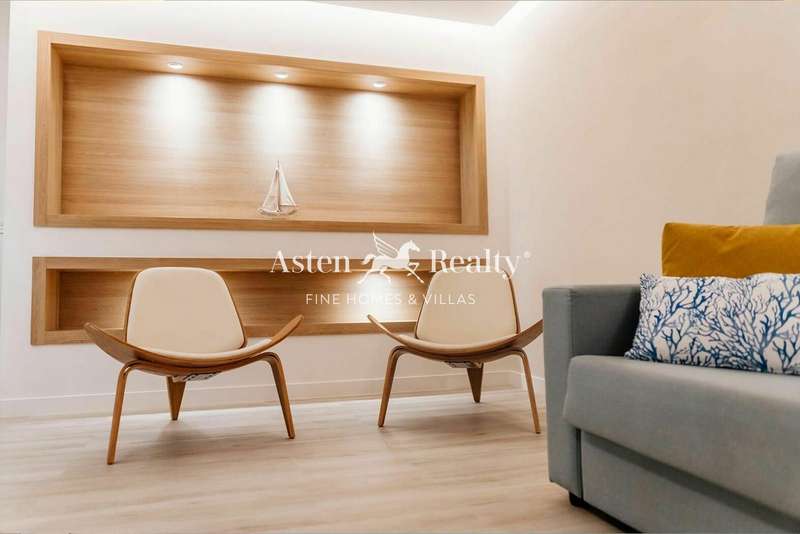 One-bedroom apartment with a bathroom, living-dining area, and a sunny balcony almost all year round. Fully furnished and equipped with stylish, high-quality furniture, ready for immediate tourist rental.