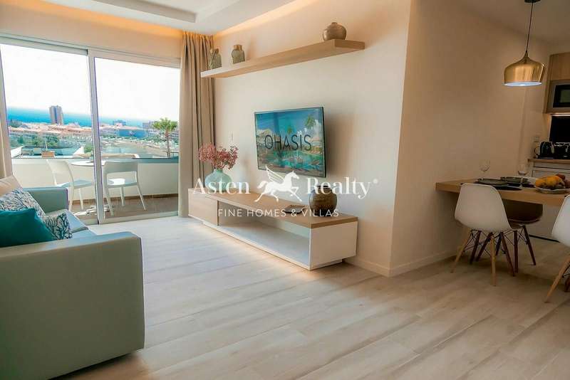 Luxury apartment for sale in a new tourist complex in the center of Los Cristianos, a privileged location with high demand and a guaranteed return from the hotel management. The apartment is always in perfect condition, with no expenses or responsibilities for you.