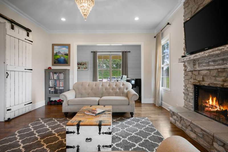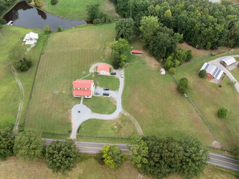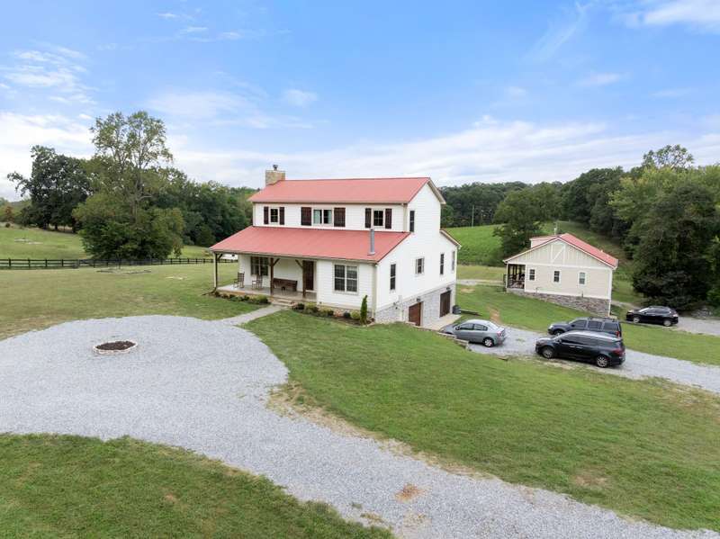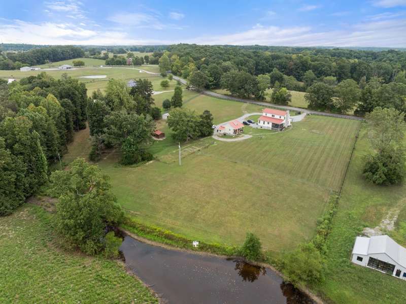 Nestled on 5 acres in serene Leipers Fork, this property offers three distinct living spaces: a 4-bedroom, 3.5-bath main house, a step-free lower-level efficiency with garage access, gas fireplace and beautiful views, and a charming 1-bedroom, 1-bath cottage perfect for guests, rentals, Airbnb, or a studio. Both homes feature full basements and safe rooms for added security. Enjoy a shared 0.3-acre stocked pond, a 32'x12' barn with a livestock run-in shed, and a hen house for fresh eggs. Relax on front porches or the main house's two screened-in porches, ideal for year-round use. Just a short drive away, discover delightful local restaurants, and in 20 minutes, the vibrant village of Leipers Fork offers restaurants, shops, art galleries, music venues, and more. Conveniently near I-840, you are less than an hour from Nashville, Franklin, the airport, and urban amenities, blending rural tranquility with easy access to city conveniences. Enjoy gardening, fishing, and peaceful porch evenings in this idyllic retreat.