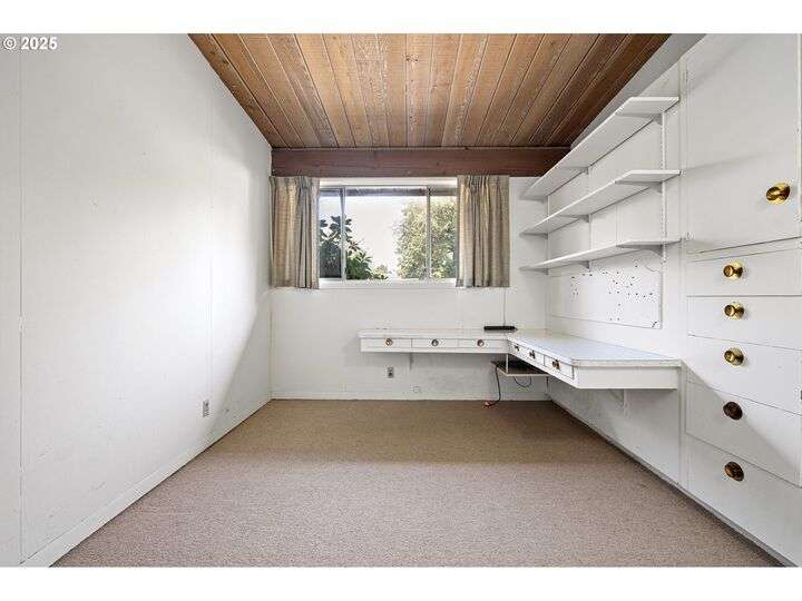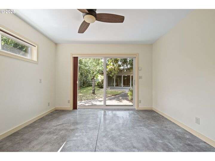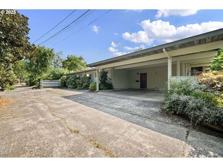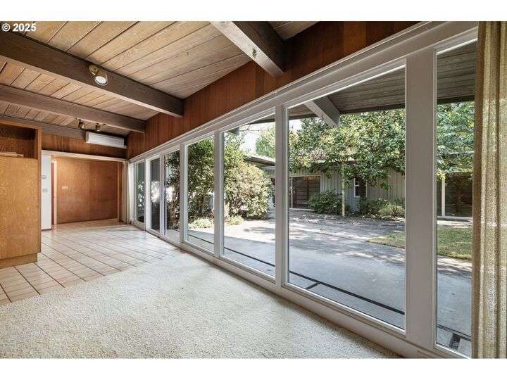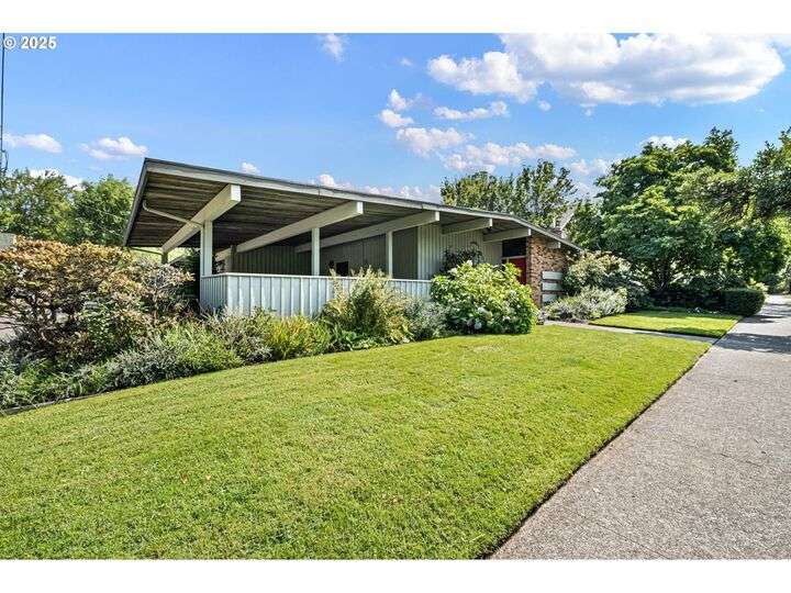 A rare Mid-Century Modern home in Eugene’s University District, offering both timeless design and everyday comfort. This 4-bedroom, 2-bath single-level residence is thoughtfully built around a private courtyard, with sliding glass doors that blur the line between indoors and out. Clean lines, open spaces, and concrete thermal flooring highlight the simplicity and efficiency that define mid-century architecture, while abundant natural light creates a warm, inviting atmosphere. The University District is known for its tree-lined streets, bike-friendly lifestyle, and strong sense of community, with campus, shops, parks, and local cafés just steps away. Within the South Eugene school district, this home balances architectural character with convenience, making it ideal for anyone who values design, connection, and location.