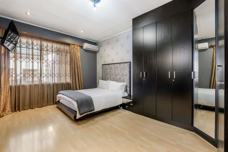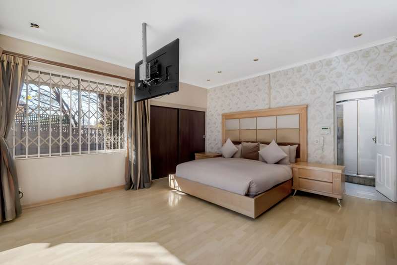 One Minute to Masjid Saffiyah. A Lifetime of Comfort, Security and Convenience. Location matters. And when you’re just a one-minute drive from Masjid Saffiyah, every day starts and ends with ease. Set within one of Emmarentia’s most desirable and secure enclosures, this lock-up-and-go home offers the ideal blend of space, safety, and simplicity. Larger than a townhouse but more manageable than a full-sized home, it’s designed for those who want a little extra room without the burden of high maintenance. Perfect for professionals, families, or downsizers who refuse to compromise on quality of life. The main house offers three comfortable bedrooms and two bathrooms. A light-filled, open-plan lounge and dining area creates a welcoming atmosphere, while the separate kitchen features timeless wood cabinetry and granite countertops. Just off the living area, you’ll find a quiet study space and a dedicated prayer room for spiritual reflection. At the front of the property, a private studio cottage provides additional flexibility for guests, extended family, or passive income. A sparkling pool completes the picture, inviting you to relax and entertain in style. Three covered carports plus additional space for three more vehicles make everyday living convenient. Hosting a function? The secure enclosure allows for safe on-street parking, no hassle required. Behind the home lies a full staff accommodation with its own bathroom, a separate laundry room, and two spacious storerooms to meet all your practical needs. This is more than a home. It’s a rare opportunity to enjoy the best of Emmarentia, just moments from the masjid, wrapped in security, comfort, and a location that speaks for itself.