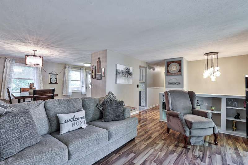 Spacious 3-Bed, 2.5-Bath Bi-Level! This home offers an inviting open-concept upper level featuring a bright living room and dining area with laminate flooring, kitchen with stainless steel appliances where you can enjoy meals with ease, complete with space for a table and a walkout to your newly resurfaced tiered deck perfect for entertaining or relaxing outdoors. The primary suite includes a private full bath, while two additional bedrooms and another full bath complete the main level. The finished lower level adds even more living space with a large family room, wall-to-wall carpet, a convenient half bath, laundry area, and direct access to the 2-car attached garage. Recent updates include brand-new gutters. Located in the Forest Hills School District; this property combines comfort, space, and convenience!