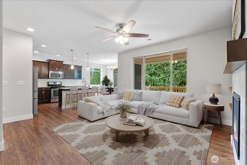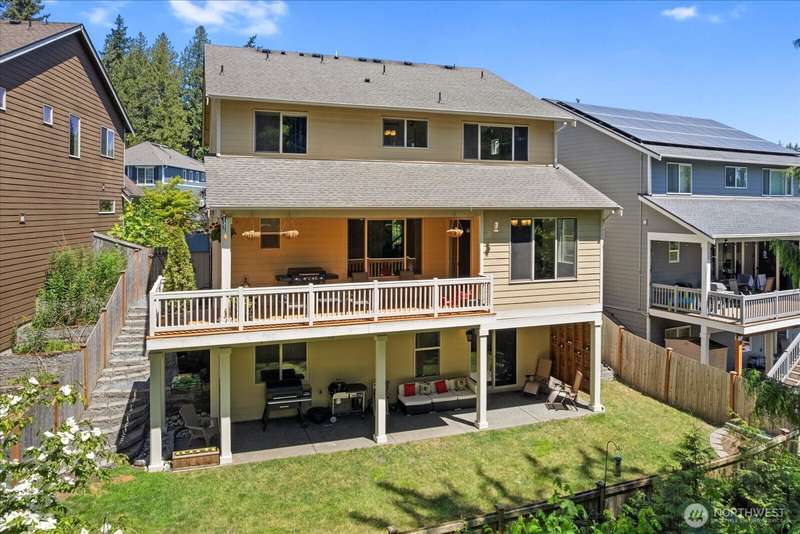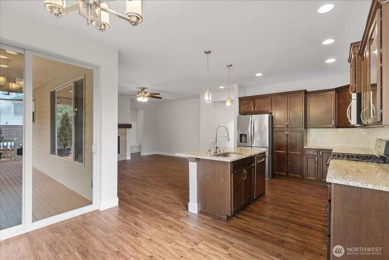 Move in ready Snohomish home! New LVP flooring on main, fresh interior paint throughout. Multi-generational potential in daylight basement [1 bed & 3/4 bath] + large rec room. 5 bed/3.5 bath + flex space/loft. Open kitchen w/SS appliances, slab granite, touch faucet & insta hot, island w/ bar seating. Spacious dining area w/doors out to covered deck, perfect for all seasons! Inviting great room w/gas fireplace. Fully fenced backyard, patio w/privacy screen, gate to add'l property backing to NGPA. Garage includes custom cabinets/workbench. Generous storage, up/down shades, ceiling fans throughout. H/C hose bibs, leaf guard gutters, storage shed. Snohomish School District! Community park, close to amenities. EZ access to commuter routes!