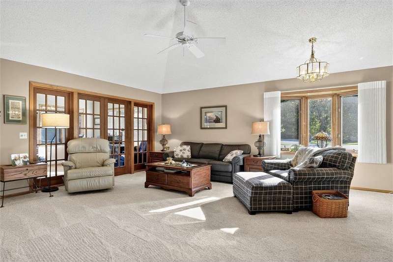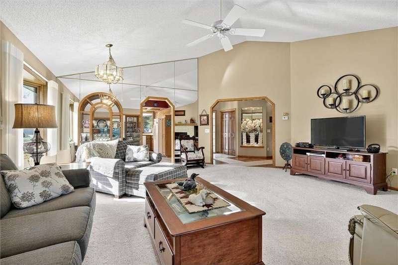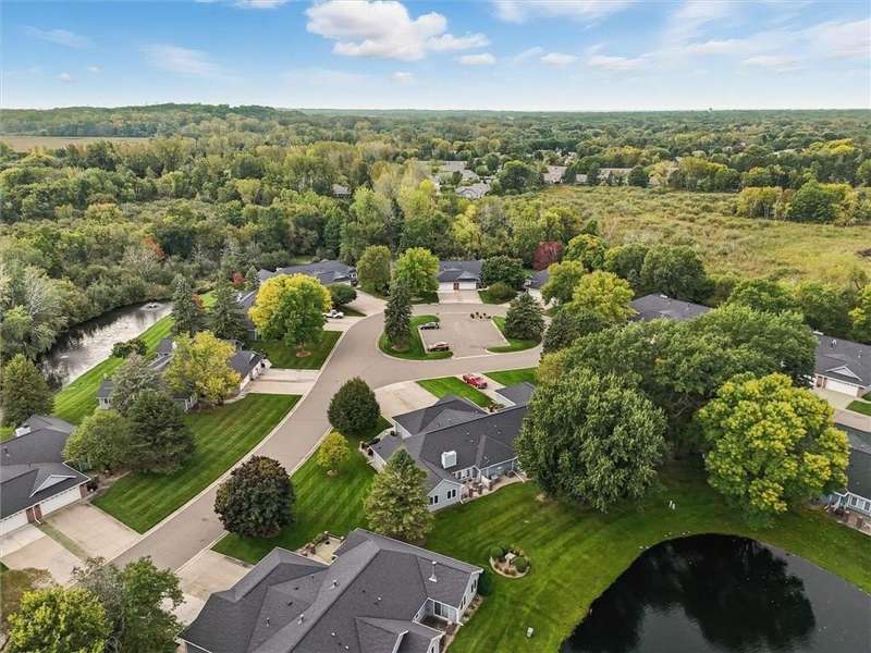 Spacious charming one level living townhome in highly sought after Lexington Estates. Beautiful 2 Bdrm 2 Bath townhome w/numerous vaulted ceiling rooms including vaulted huge Living Rm w/cozy gas fireplace+plush carpet. Gorgeous Sunroom w/lots of windows and patio overlooking tranquil pond and green space. Sun-filled Kitchen w/SW exposure windows, updted tile floors raised panel cabinets, plenty of counter space and informal Dining area. Vaulted Prim Bdrm w/updted laminate flrs, On-Suite Full Bathrm w/jet tub, separate shower and tile floors. 2nd Bdrm, 2nd Full Bathrm w/tile flrs and Laundry Room w/tile flrs. Wide hallways w/updated laminate flooring also in Bdrms for easy accessibility and cleaning. Large two car finished garage w/plenty of storage space. Newer mechanicals in last 5yrs inc: Carrier furn+AC+Water softener+water heater. Quiet cul-de-sac location with little traffic and neighborhood trail across cul-de-sac is great for walks with pets. Low quarterly HOA fees w/self mgnt association and good reserves. Ideal quiet private neighborhood just a short drive Hwy 35W and plenty of restaurants/shopping. Hurry not many of these available.