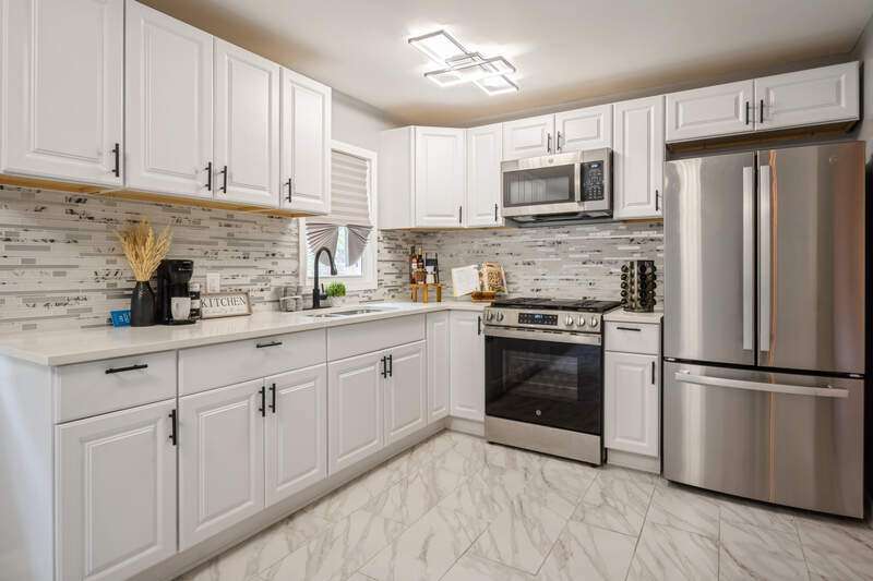 Welcome to this beautifully renovated 4-bedroom, 2.5-bath ranch located at the end of a quiet block in Gary, IN. This move-in ready home features a fully finished basement, offering ideal space for recreation, work-from-home, or multi-generational living. Enjoy high-end updates throughout, including quartz countertops, custom tile in the kitchen and baths, vinyl plank flooring in common areas, LED lighting, and a full stainless steel appliance package.The spacious layout includes an open-concept living/dining area, modern bathrooms with upgraded plumbing fixtures and vanities, and a private front porch perfect for relaxing. The bold red-accented exterior entry adds curb appeal, while the long driveway, garage, and fully fenced backyard provide ample privacy and outdoor enjoyment.Updated HVAC systems and thoughtful finishes throughout make this home a standout. Schedule your showing today--this one won't last!
