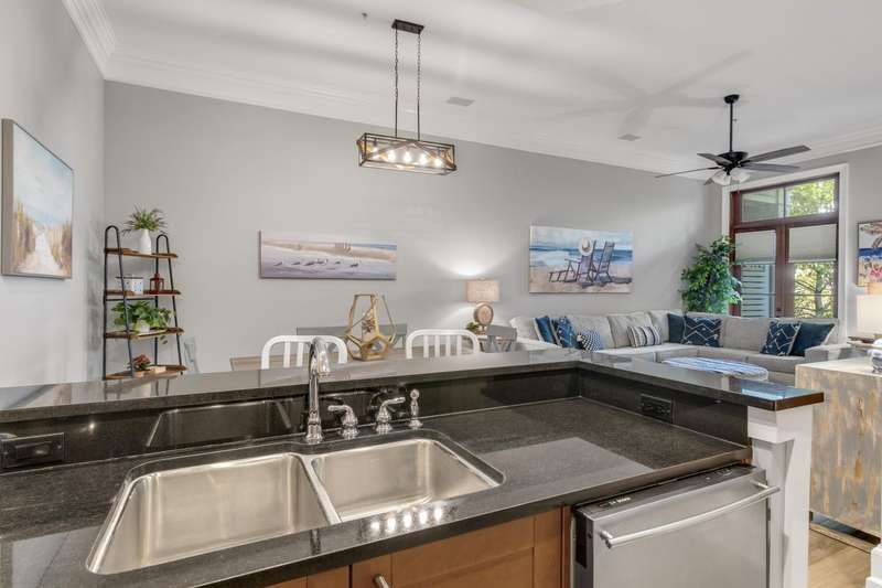 New Compelling Price for this New Orleans inspired condo overlooking the Choctaw Bay in The World Renowned Sandestin Golf and Beach Resort. Reminiscent of a French Quarter neighborhood, Le Jardin is conveniently located steps away from The Village of Baytowne Wharf and The Baytowne Marina. Le Jardin 168 is a completely renovated, luxury 3 story townhome with 3 bedrooms & 3.5 baths. Renovations consist of new floors, new furnishings and new interior paint throughout (2022); new 2nd & 3rd floor decks and new A/C (2023); new roof (2024). A welcoming first floor patio provides entry via double mahogany French doors into an open & spacious living area with 12ft. ceilings and custom molding, connecting to a chefs kitchen that includes Sub Zero/ VIKING appliances, granite counter tops
