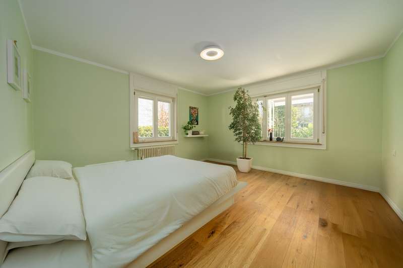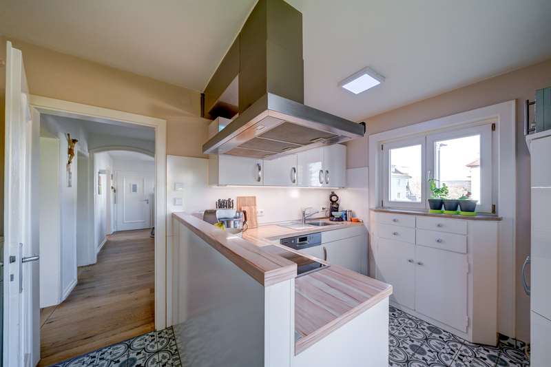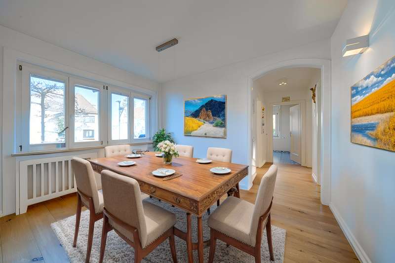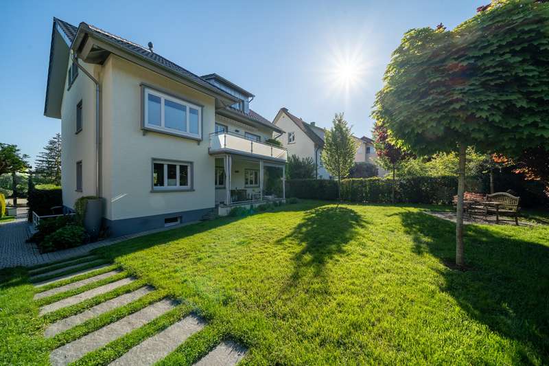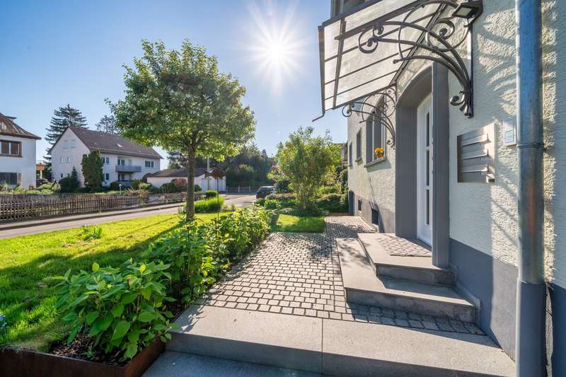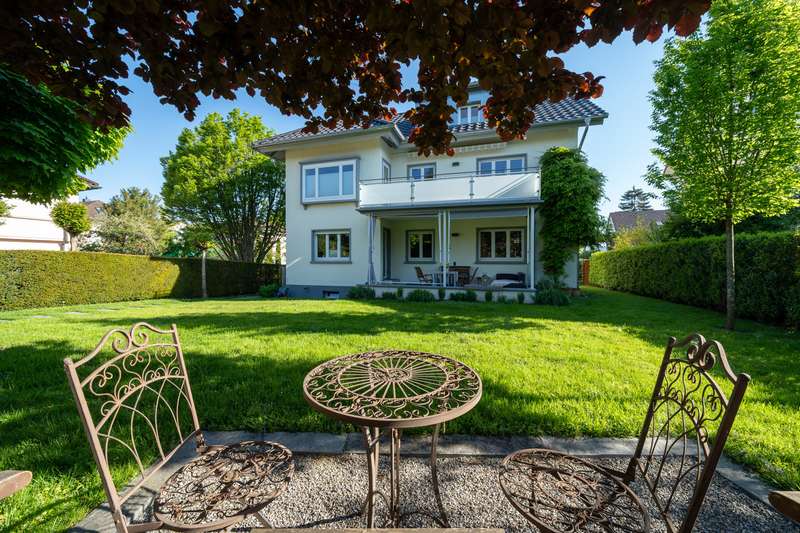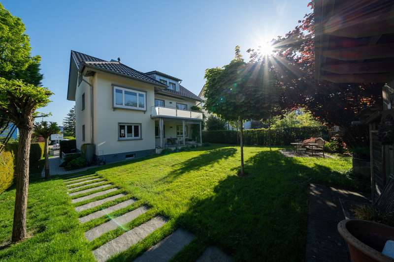Family-friendly idyll surrounded by peace, nature and proximity to the lake This very well-kept house, which was completely renovated in 2018, is located on the sunny Mettnau peninsula in the immediate vicinity of the lake and the popular Mettnaupark. Here you are surrounded by peace and nature and can switch off from everyday life. The very idyllic and bright property combines the charm of an old building with modern comfort and loving details. A perfect choice for all those who do not want to do without amenities in the midst of green surroundings. The renovated house, built in 1954, with a floor plan of 10 rooms in total, offers you generous living comfort combined with a wide range of living options. The property is currently divided into three self-contained units that can be used separately or rented out. It is also conceivable that a large family could spread out over the three levels and feel very comfortable together. The property is therefore ideal for a multi-generational home, a large family or as an investment. The heart of the first floor is the spacious south-facing terrace, which is ideal for relaxing outdoors and provides direct access to the very well-kept and lovingly landscaped garden. The sunny and quiet garden plot, which is surrounded by well-tended gardens, also offers some lake views in winter. Another highlight is the large south-facing balcony on the upper floor, which is not only suitable for long hours of sunshine, but also offers a pleasant retreat. Each unit has modern bathrooms and fully equipped kitchens for added convenience in everyday life. Every room in the property is flooded with light and conveys an inviting atmosphere that invites you to linger. Large window fronts and the well thought-out room concept reinforce this effect. The floor coverings are made of high-quality fine wood parquet and designer vinyl flooring with a wood look or designer tiles in the kitchen and bathroom. There is a cozy fireplace on both the ground floor and the upper floor, which creates a pleasant atmosphere in winter. The location of the house offers excellent connections to the surrounding infrastructure. The city center is only a few minutes' walk away. The beautiful Lake Constance, which is ideal for leisure activities, is also just 250 steps away. The proximity to Mettnaupark invites you to take long walks and relax in the countryside. Shopping facilities, schools and public transport are also within easy reach. There is a city bus stop 150 m from the house This unique combination of closeness to nature and urban comfort makes the property an ideal place to live. The interplay of generous living space, high construction quality and modern furnishings in the immediate vicinity of the lake offers an appealing overall picture that will make the hearts of home lovers beat faster. If you are interested in a viewing, please contact us at any time. We look forward to presenting this idyllic property to you in person.