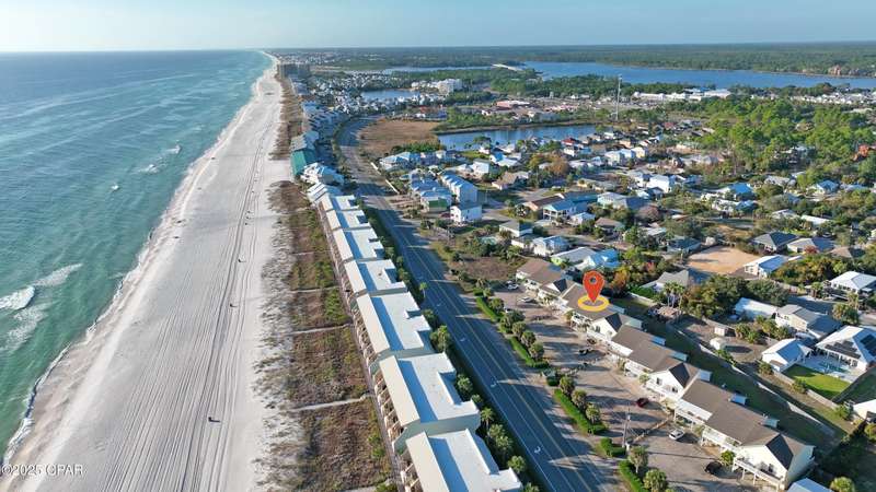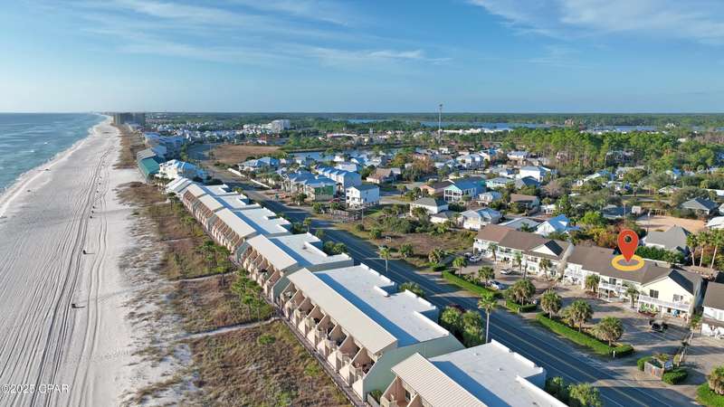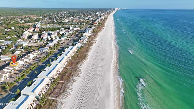 CURRENTLY UNDER CONTRACT, SELLER WILL CONSIDER BACKUP OFFERSBeautiful Townhome on the quiet end of the beach and across the street from the GULF. Beach access 94 is few steps away. This unit is close to shopping, to 30A (3-4 miles) and Pier Park (5 miles). It is fully furnished and in excellent condition. 2 full baths upstairs and a half bath downstairs. Beautiful main bedroom with large balcony, recently updated: roof 2016, impact windows and doors 2018, new cement board siding 2018.