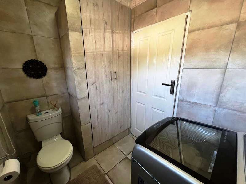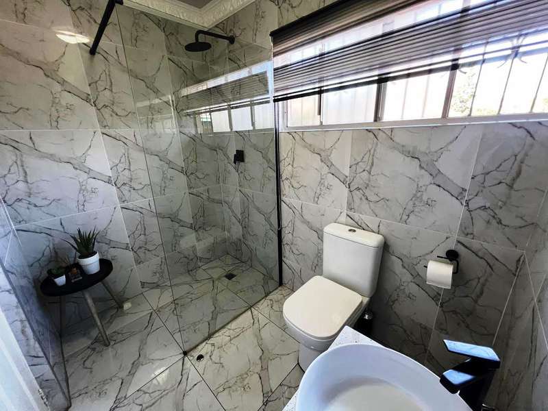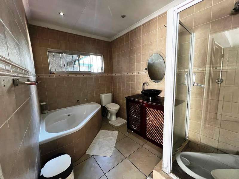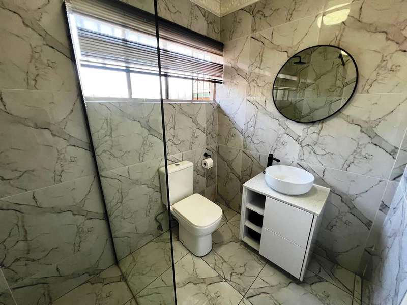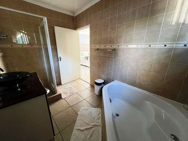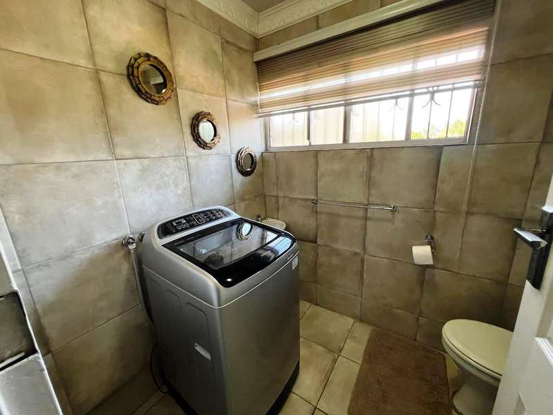3 full bathrooms, one with shower, basin & loo. Second bathroom with basin, loo and linen cupboard, can be used as a laundry room. Third bathroom MES with corner bath, shower & loo.