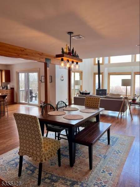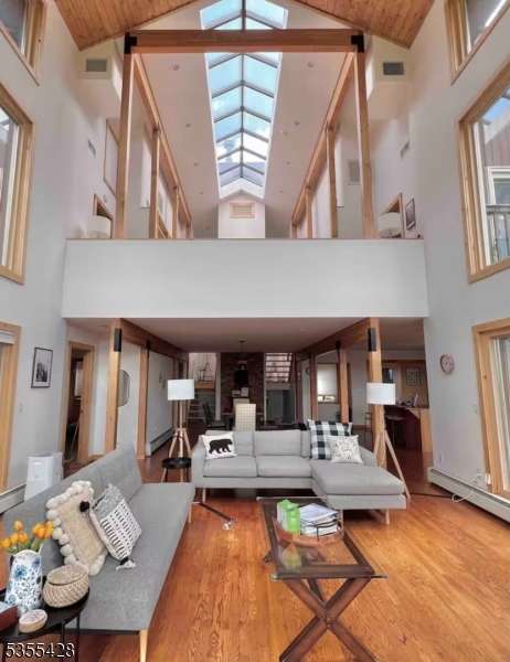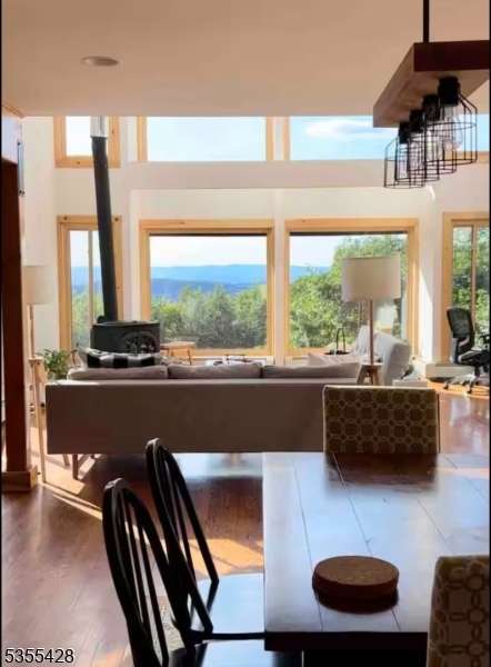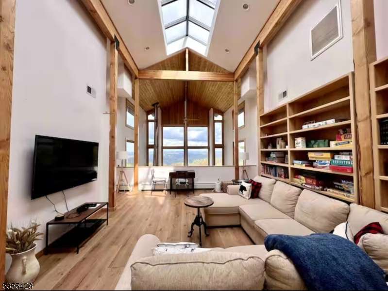Custom built home with 2 story windows makes for some spectacular views! This amazing 3 bedroom 2.5 bath retreat sits on 2.81 private wooded lands w/amazing mountain views from every window in the home! This open concept home boasts gleaming hardwood floors throughout, first floor master w/private deck. The 2nd level has 2 large bedrooms, a full bath, and a loft overlooking the great room and the views. New efficient ETS (Electric Thermal Storage) heating system provides consistent, comfortable warmth throughout the home. Designed to take advantage of off-peak electric rates, ETS units store heat during low-demand hours and release it during the day, offering energy savings and reliable comfort.All new windows and doors with warranty. Twin tracks of skylights with wood-paneled ceiling complete this magnificent one of a kind home! Minutes from Warwick and Crystal Spring Resorts/ Mountain Creek