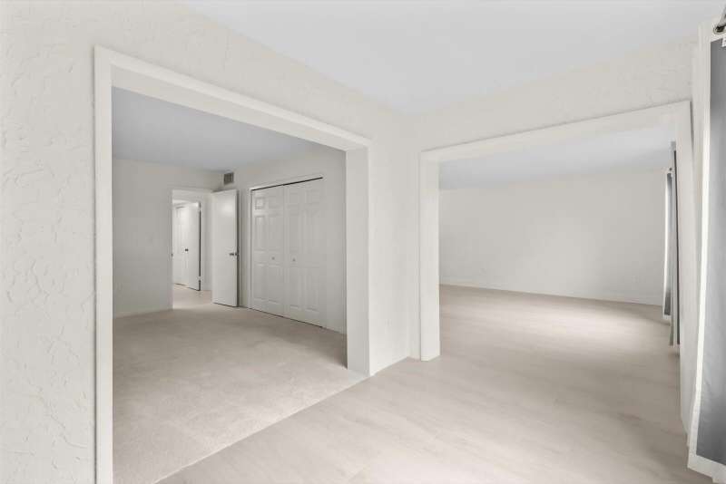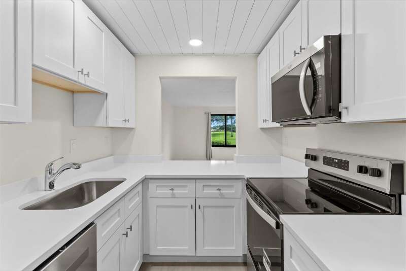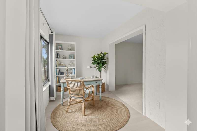 Enjoy peaceful views of the 14th fairway at Miles Grant Golf Course right from your living room or sun-filled bonus room. This home has been thoughtfully updated where it matters most: beautiful new tile flooring in the living areas and kitchen, brand-new appliances (including washer and dryer), and fresh cabinetry with quartz countertops in both kitchen and baths. The air conditioner was replaced in 2017, and you'll appreciate the ample storage with multiple closets throughout. A bonus room off the primary bedroom makes an ideal study, hobby space, or quiet reading nook.For peace of mind, every window has hurricane protection with impact glass, many also have accordion shutters in addition.Living at Miles Grant Country Club means more than just a home--it's a lifestyle. See More.