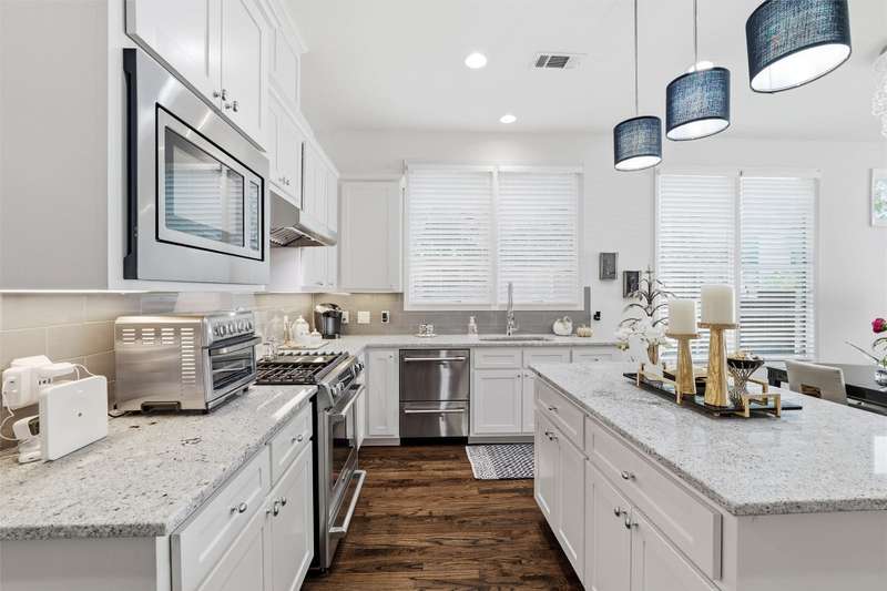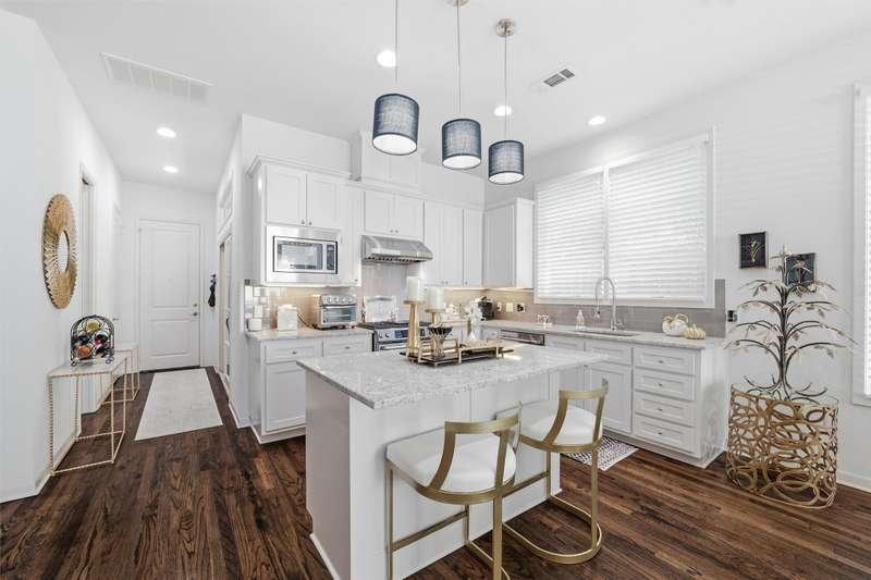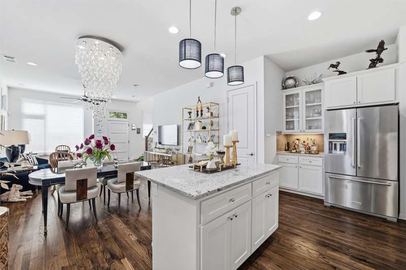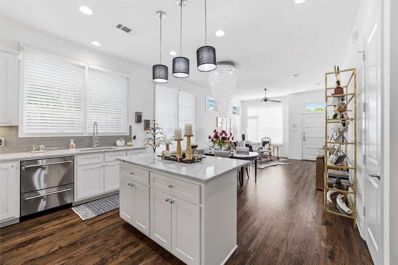 Stunning townhome located in the heart of the cultural district. Within walking distance to Dickies Arena, Museums and Restaurants. This 3 Bedroom, 2.5 bath features a beautiful wood floor entry and staircase, tall ceilings, designer lighting and an open concept kitchen and family room. The kitchen is oversized, offering lots of cabinets and a center island with plenty of room for bar stools. This is an end unit with large windows for natural light and privacy and a beautiful back patio for outdoor living as well. The refrigerator and washer and dryer are included. You will not long for storage in this townhome.
