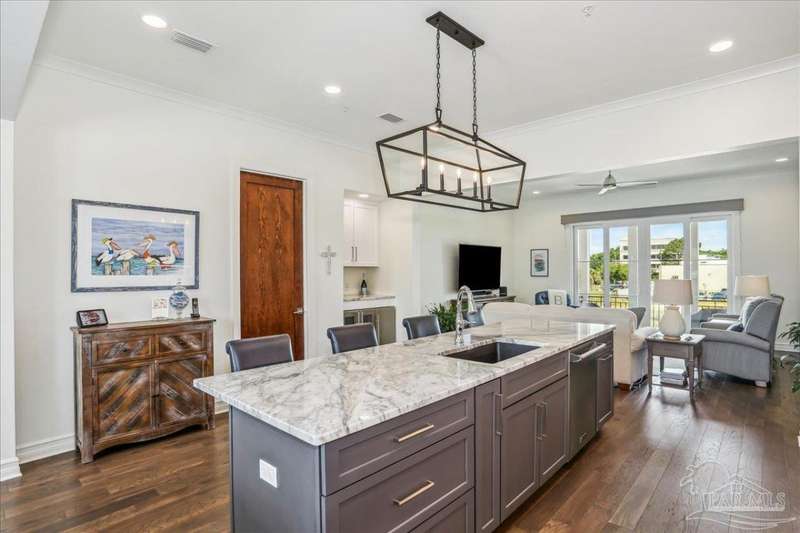 *DOWNTOWN PENSACOLA* Experience upscale urban living in this exquisite Townhome. This three-bedroom, three-and-a-half-bath townhome is located in the coveted Girard Place community in downtown Pensacola. This elegant residence blends sophisticated style with modern convenience, offering a private elevator for seamless access to all levels. Boasting two balconies, one of which overlooks the inviting pool. Step out to the private patio to enjoy a barbecue or sip a drink. A wet bar is conveniently located adjacent to the patio for ease while entertaining family and friends. The Gourmet kitchen featuring high-end Viking appliances, granite countertops, custom cabinetry along with a walk in pantry. A Bonus room with custom built-in cabinetry and a Murphy bed, perfect for guests or a home entertainment room. This home offers smart home technology which allows you to control lighting, heating/cooling and security all from the convenience from your phone. The master bedroom offers beautiful views of downtown, a large walk in closet and a very inviting ensuite. A double vanity, separate soaking tub with a tile surround shower. This ensuite also has a separate water closet. Two other guest rooms offering ample closet space. Engineered hardwood flooring throughout, with designer tile in all bathrooms. Plantation shutters and remote-controlled custom shades for privacy and ambiance. A large two car garage offers parking convenience and extra storage space. With refined finishes and thoughtful upgrades throughout, this home provides a unique blend of luxury and comfort in one of Pensacola's most desirable locations. Located a short walk to Ever'man Grocery and cafe, The Blue Wahoos Stadium, Maritime Park, YMCA and numerous restaurants and shops. Don't miss your opportunity to Own the Lifestyle. Call for a tour today!