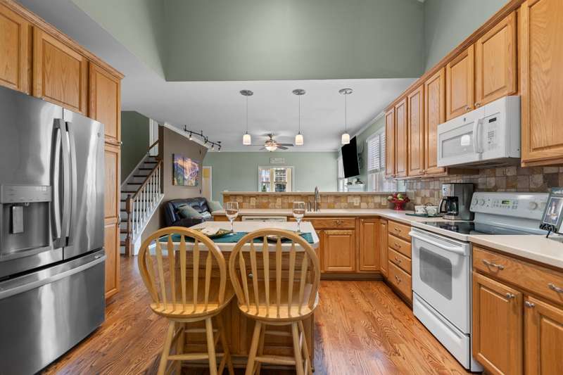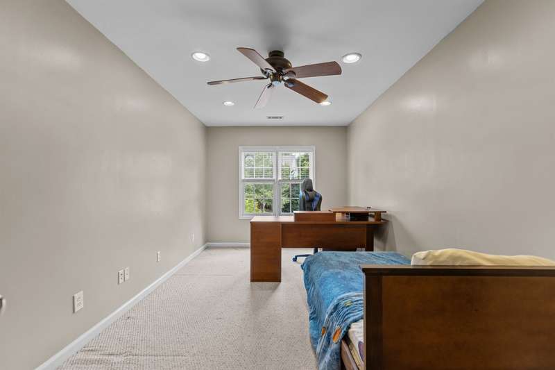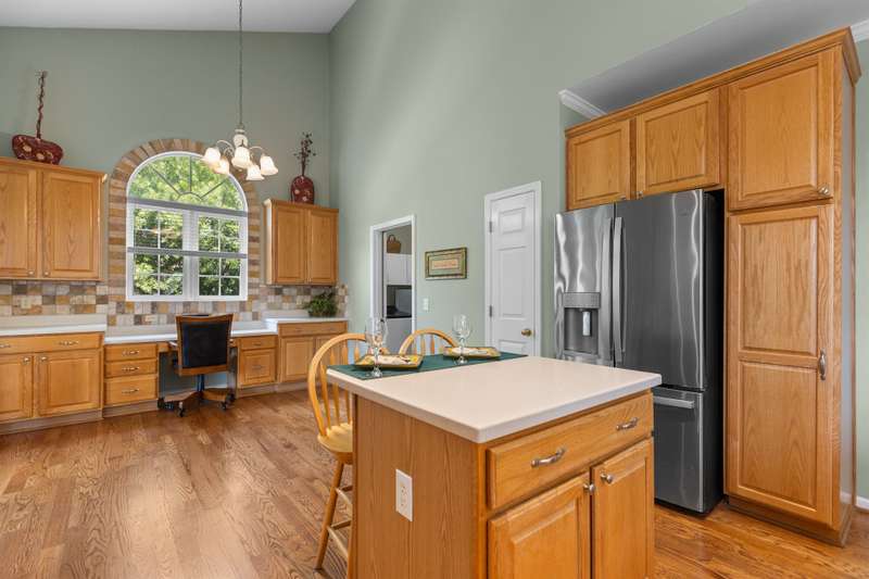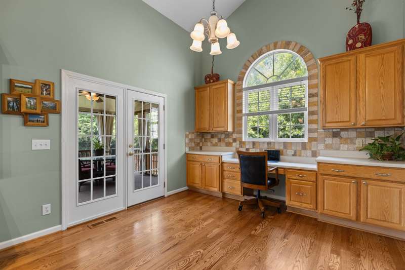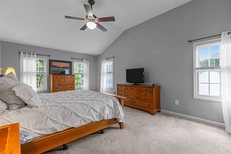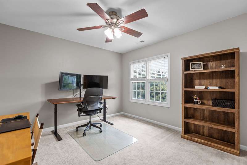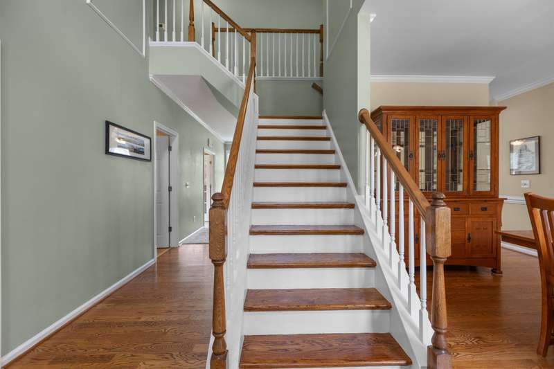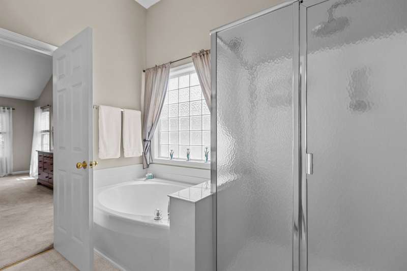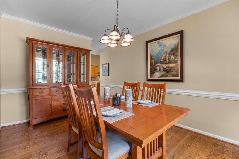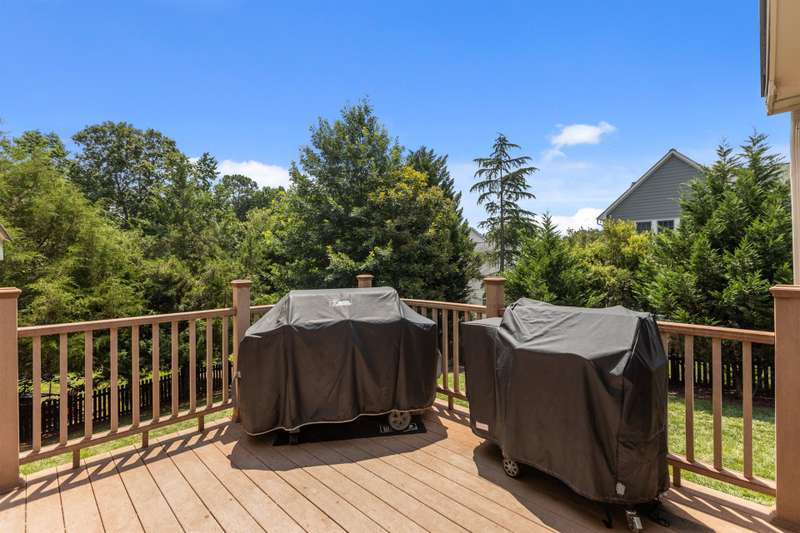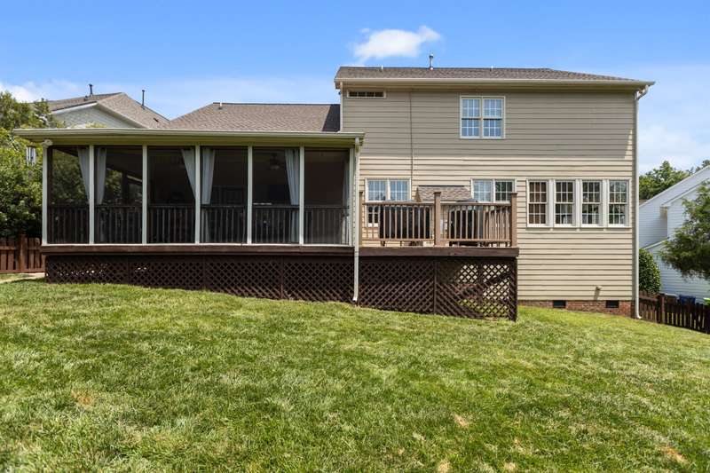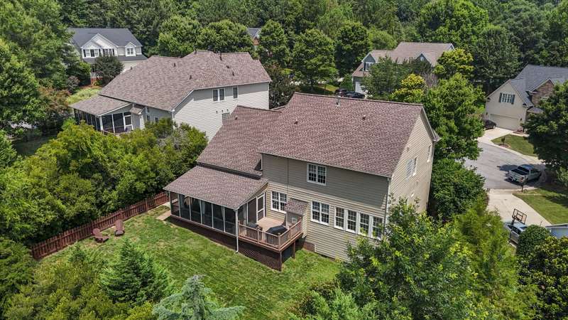 Welcome to your Raleigh/Wakefield oasis! This refreshed 2 story home blends contemporary comfort with a smart design. The spacious layout includes a family room with natural gas fireplace, formal dining, and a sunlit library/home office with custom built-ins. The kitchen shines with an island, tile backsplash, breakfast nook and ample storage. Main floor bedroom with a full bath for your guests. Retreat upstairs to a serene primary suite with a vaulted ceiling, garden tub, and walk-in closet space. 2 more bedrooms, a possible 5th bedroom or flex room, bonus room and walk-in storage complete the 2nd floor. Outside, relax in tranquility on your huge screened porch and maintenance free deck overlooking a fenced, private backyard. Enjoy the 2-car extended garage with full depth cabinets and workbench. Tankless H2O heater. New roof 2018. Great cut-de-sac location: close to neighborhood schools, country club, community pool, clubhouse, YMCA, Falls Lake, 540, Neuse River Trail, shopping, and dining! See Features/Update list for more details.