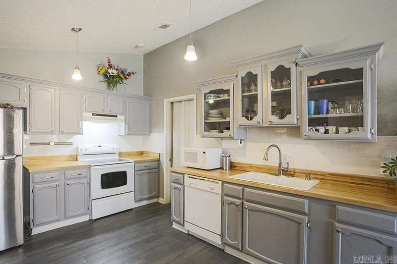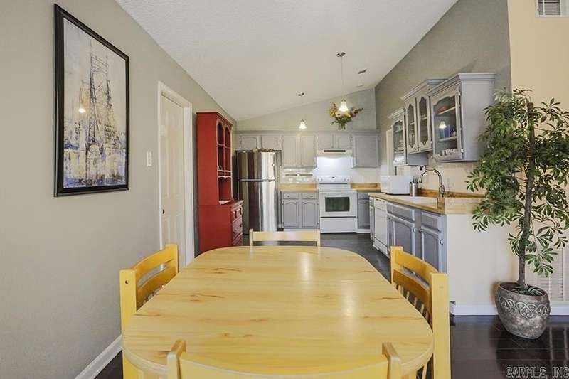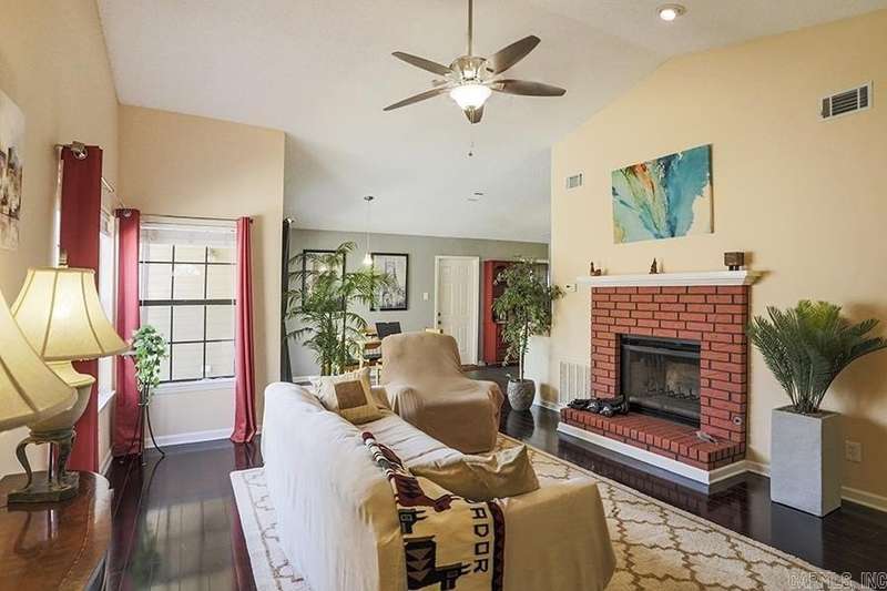 Wonderful one level home just minutes from shopping and schools. Open floor plan features vaulted ceilings and two living areas, both with fireplaces! Nicely updated kitchen and bathrooms with a good sized laundry room with storage. Hardwoods throughout. Wonderful deck off the side door, just perfect for summer fun. Welcoming front porch as well as inviting flat back door entry from private drive in back of home with two car garage. New roof in 2023. HVAC from 2019. Fresh paint. Located in desirable Woodland Hills neighborhood.