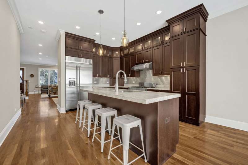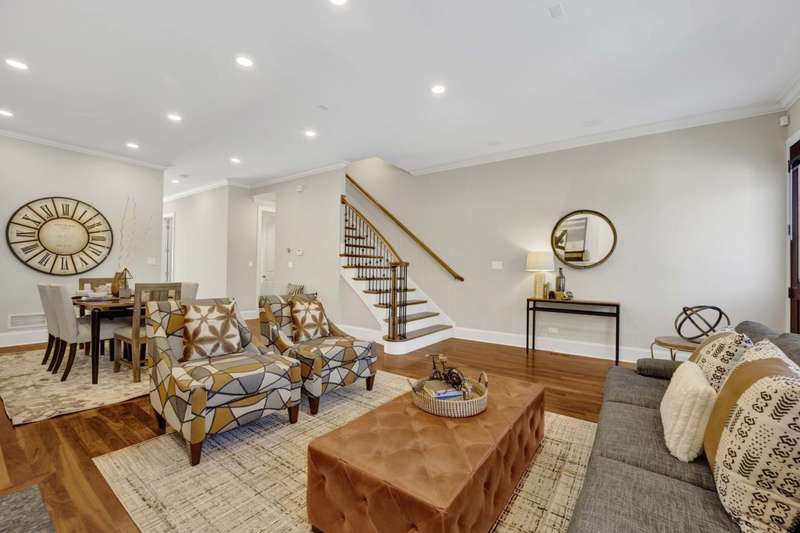 Meticulously maintained and built in 2008, this stunning Andersonville residence blends luxury, space, and an unbeatable location. Inside, you'll find walnut floors throughout, a chef's kitchen with rich walnut cabinetry, stainless steel appliances, honed granite countertops, a spacious island, and an oversized walk-in pantry-perfect for entertaining or everyday living. The sun-drenched interior features soaring ceilings and oversized windows on every level. The second floor offers three generously sized bedrooms, including a luxurious primary suite with a spa-like marble bath featuring a steam shower, rain shower head, whirlpool tub, and custom-built closets. A second-floor laundry room adds everyday convenience. The lower level expands your living space with an additional bedroom and full bath featuring double sinks and a tub-ideal for guests or extended family. There's also a spacious bonus room complete with a dry bar and beverage center, plus radiant heated floors and a second laundry area. Modern comforts abound: dual-zoned HVAC, gas fireplace, surround sound wiring, and recent updates including new roof, tuckpointing, and parapet (2024), chimney recapped and sealed (2024), and newer furnaces (2023). Outdoor living is just as impressive with a private roof deck featuring composite decking, a landscaped backyard with newer paver patio, and an attached 2-car garage with a radiant heated driveway. All of this in a prime Andersonville location, just half a block from Clark Street's vibrant shops and restaurants, close to the CTA, El, Metra, Mariano's, parks, and only 3/4 mile to the lake.