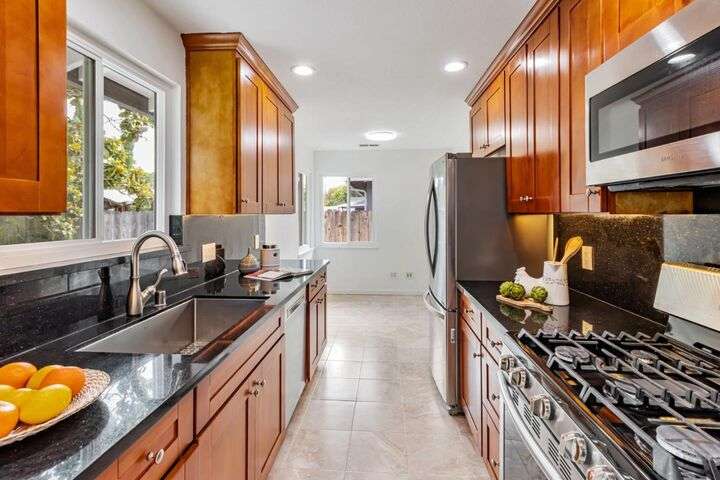 Nestled on a peaceful street in the heart of Santa Clara, this inviting home offers the perfect balance of comfort, convenience, and future potential. Ideally located near major freeways, expressways, top tech employers like Nvidia, Intel and Apple, Levis Stadium, Santa Clara University, and premier shopping and dining at Valley Fair and Santana Row, it's truly at the center of it all. Set on a generous 5,940 Sq. Ft. lot, the property offers room to expand and low-maintenance landscaping in both front and back yards. Outdoor lovers will enjoy easy access to the San Tomas Aquino Creek Trail, which connects to the Bay Trail for biking to Sunnyvale, Mountain View, and beyond. Inside, the home features central heating and A/C, double-pane windows for energy efficiency, copper plumbing, and a 200-amp electrical panel. The living room includes recessed lighting, a fireplace and dining area. The remodeled kitchen is equipped with granite countertops, a deep sink, gas oven/range, microwave, refrigerator, disposal, and tile flooring. All this, plus low Santa Clara utility rates, makes this home a smart and stylish choice.