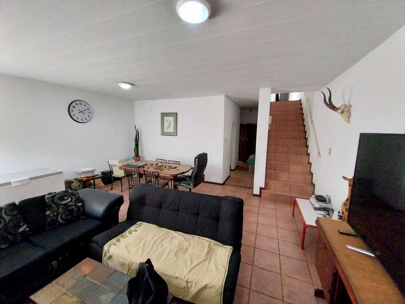 This NEW and EXCLUSIVE listing just hit the market - A spacious 151m² home offering space for relaxation and entertainment combined with a private and cosy family bedroom area on the upper level. The open-plan lounge and dining room leads into an exclusive private garden making it the ideal setting for unwinding and hosting guests around a summer braai. The neat kitchen boasts ample cupboard space with melamine counter tops, a new eye-level oven and hob. A bonus is a guest toilet located on the lower level making it private and convenient for visitors as well. Upstairs is where you will find 3 good sized bedrooms and 2 bathrooms, one of which is a full en-suite bathroom leading off the spacious main bedroom for convenience and privacy. At the top of the stairs is a large cupboard for your washing machine - hidden away behind a neat door. The unit is tiled throughout. The single garage and convenient open parking area offers space for 2 vehicles and a small trailer. This unit is pet friendly with Body Corporate approval. This neat and secure property is conveniently situated close to schools, shops, churches and the freeway network. Note: The current Tenant’s lease expires 30 November 2025. This property is priced to sell and perfect for the young family - Contact me for your EXCLUSIVE viewing!!