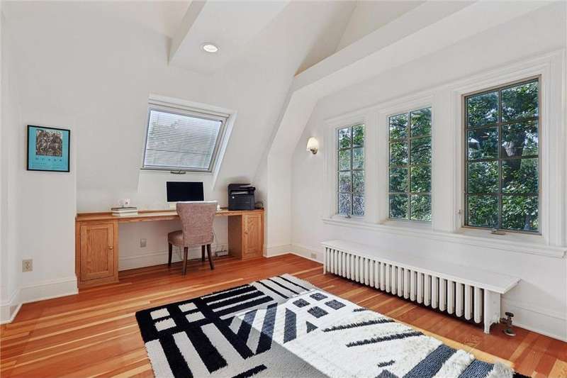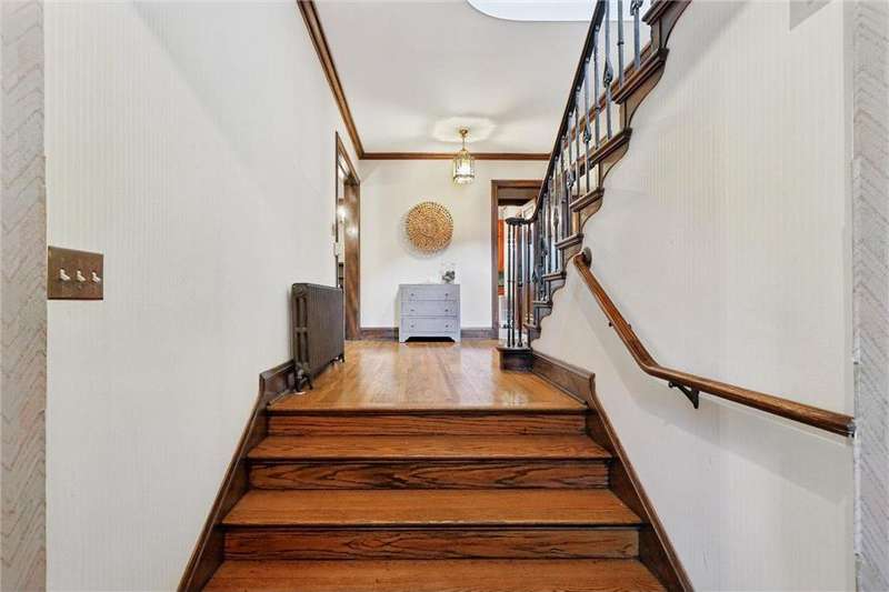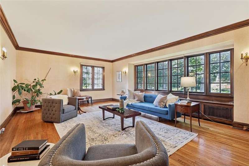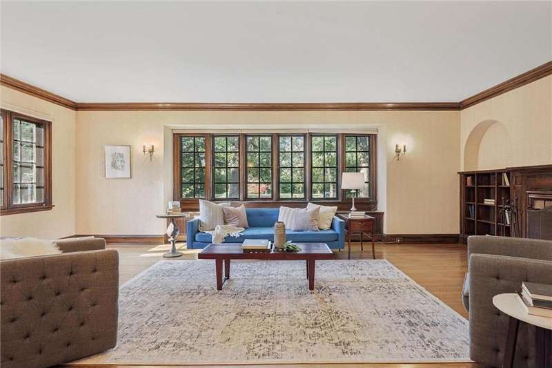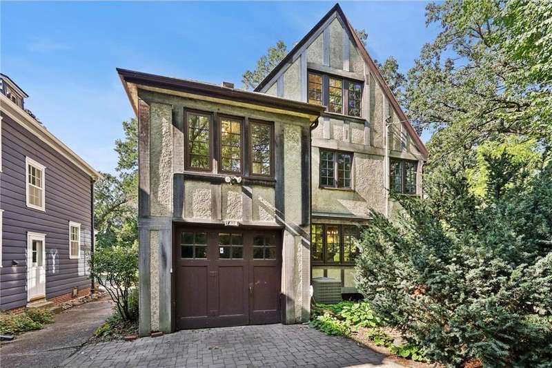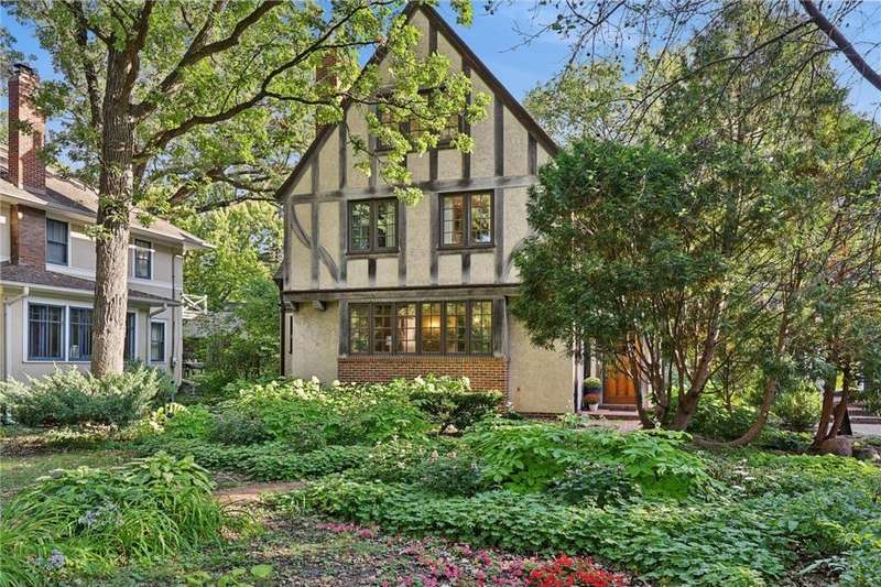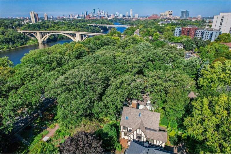 This beautiful 6-bedroom, 4-bathroom home, designed by architect Frederick Mann, sits on River Road in Prospect Park and is available for the first time in over 57 years! Rich in character and thoughtfully updated, it blends historic detail with modern comfort. Step through the original front door into an entryway with stained-glass windows, tile floors and an original staircase with iron accents. The large living room has the first of three fireplaces in the home and is filled with windows, timeless lighting and beautiful hardwood floors. The centrally located kitchen offers an eat-in option with a dining nook or for a larger gathering the formal dining room is a perfect setting. The second floor offers an open, airy layout with endless flexibility; use the rooms as bedrooms, a den, office, library, or playroom. Most rooms feature unique built-ins, hardwood floors, and generous closets. A cozy fireplace, a full wall of bookcases, and a walk-in closet add to the charm. Two original tiled bathrooms, beautifully preserved, complete this level. A major third floor addition creates a versatile, light-filled retreat with skylights, exposed beams, built-ins, and a tiled bathroom. With views of the river this space is ideal as a primary bedroom with ensuite, a private office, playroom or simply relaxing. The lower level has an additional fireplace, family room and plenty of space for storage. Laundry room and a fourth bathroom complete the space. This home sits in a prime location directly across from the Mississippi River with access to scenic trails, parks, highways and both downtowns.