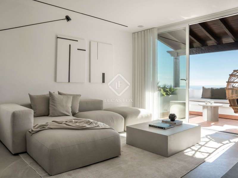 This fully renovated duplex is designed with top-quality finishes and an open-plan layout that maximizes both space and light. It boasts two spacious bedrooms, each with fitted wardrobes and luxurious en-suite bathrooms equipped with underfloor heating, ensuring comfort year-round. Additionally, there is a guest toilet for added convenience. The south-westerly aspect with glass windows floods the property with natural light, offering stunning sea views from both levels, creating a serene and inviting atmosphere. Situated within the prestigious Alcazaba Beach complex, this property offers access to a wealth of amenities. The complex is renowned for its beautifully landscaped gardens, multiple swimming pools, tennis and paddle courts, and gym, and even a beachfront restaurant. Residents also enjoy direct access to the beach, making it an ideal choice for those seeking a luxurious coastal lifestyle. The combination of high-end living spaces and the unparalleled services of Alcazaba Beach makes this duplex an exceptional opportunity. Please contact us for further information.