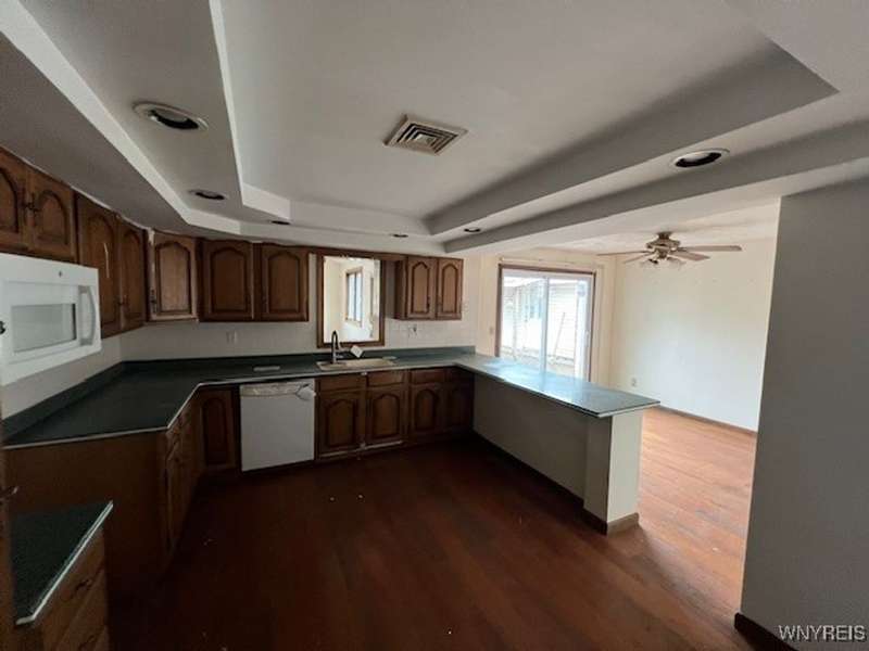 HUGE PRICE REDUCTION!! Location, Location, Location! Don't miss out on this 3 bedroom, 2 full baths and over 2000 sqft ranch located on a dead end street off of Lake Ave. in the Village of Lancaster. The front is brick and cedar shingled and the rest is brick and vinyl siding. There is an extrta long garage and an additional workshop. The rear yard is fully fenced and has a stamped patio which can be accessed from the sliding glass doors off the dining room or from the huge family room. The interior has an open floor plan with a breakfast bar, dining room, living room with a stone wood burning fireplace, (NRTC). There are 3 good sized bedrooms and 2 full baths, central air and as an added bonus the family room has cathedral ceilings and a wood stove. Investors can now bid on this property.