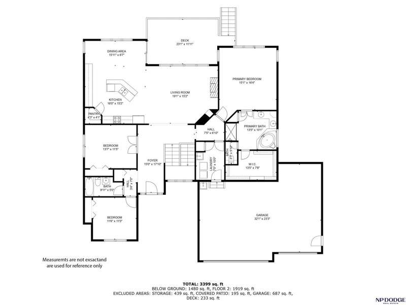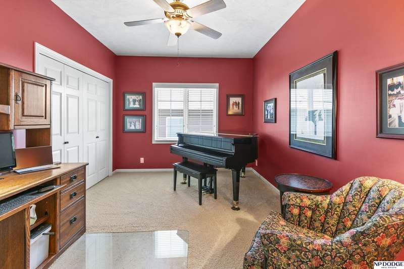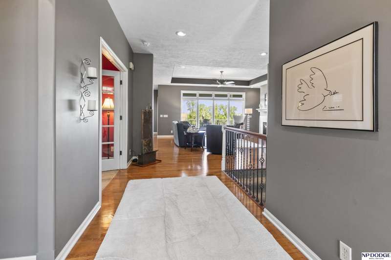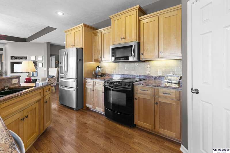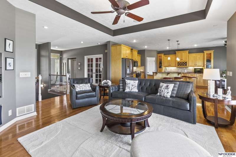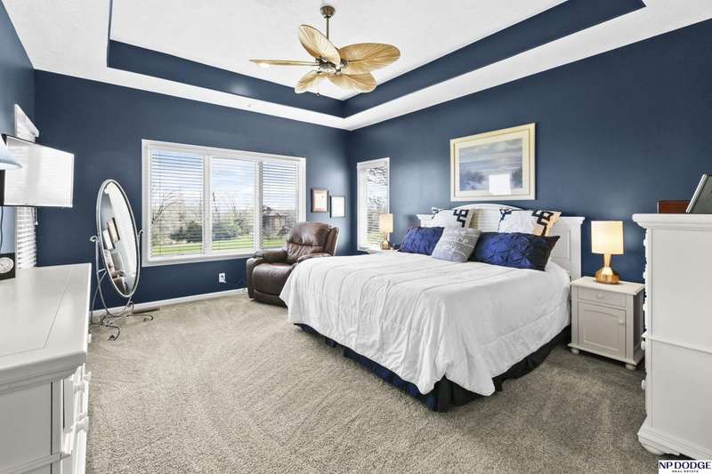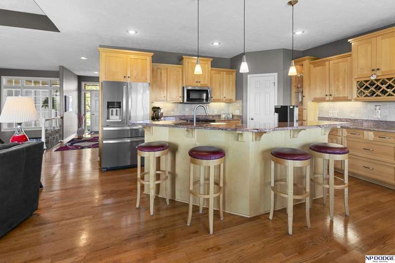 Gorgeous Brick Ranch home walks out to Iron Horse Golf Course. Amazing Views! Custom built, 1 homeowner w/over 3400 fsf. Walk in to beautiful entryway, open to FR w/wall of windows, tiled gas fp, tiled ceiling, beautiful wd flrs & built-ins. Impressive kitchen has custom birch cabinets, granite counters, tiled bksp, center island, w/i pantry, newer ss appl, wood flrs & spacious dining area w/tons of windows. Spacious primary bdroom w/lovely views, tiered ceiling, w/i closet, private ba w/whirlpool tub, dble sinks & w/i shower. Main flr includes: 2nd bdroom, office w/french doors, laundry rm w/sink. Fully finished w/o bsmt w/ daylight windows, massive FR, tons of storage, large cedar closet, 2 bdrooms w/ daylight windows & 3rd full bth w/dble sinks. New composite deck (2022) w/views for 15 miles. Oversized 3-car garage w/ epoxy flrs, sink & built-in shelves. Meticulously maintained yard w/beautiful landscaping, sprinkler system & invisible fence. New Roof (2020)