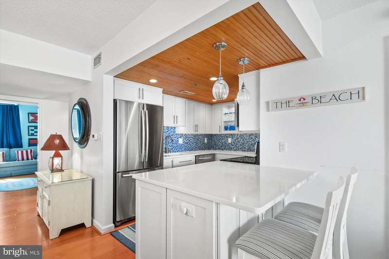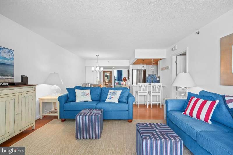 Wake up to the coast in this oceanfront condominium, offering a generous 1,175 sq. ft. floorplan located in the sought after and rarely available Island House. Presenting 3 spacious bedrooms, 2 full bathrooms and desirable North Eastern exposure, this residence welcomes spectacular morning sunrises, presenting soft natural lighting throughout. The open floorplan flows with ease, complemented by engineered hardwood flooring. Expansive sliders showcase dramatic views of the Atlantic and the oceanside pool, filling the living spaces with a gentle coastal glow and creating an inviting atmosphere. A coastal red, white, and blue decor and thoughtfully chosen furnishings enhance the home's seaside character, while the open contemporary kitchen features a wainscot ceiling, glistening white Quartz countertops, cushion-close cabinetry with a glass-doored entertainment section, stunning backsplash tile, a ceramic farmhouse sink, and stainless appliances-all seamlessly integrating with the dining area, perfect for entertaining or casual gatherings. Additional upgrades include all new interior doors, space-saving pocket doors, a Trane HVAC system (2019), and a hot water heater (2023), adding both style and functionality to the home. The oceanfront primary suite offers serene water views and boasts a gorgeous tiled walk-in shower, upgraded flooring, and custom built-in cabinets, creating a true retreat. The guest bathroom is equally impressive, upgraded with a glass-door tub/shower, vanity, and tile flooring, providing comfort and style for family and visitors alike. Step onto your private balcony to enjoy the tranquil sounds of the waves and ocean breezes. Blending upgraded finishes, soft natural lighting, and dramatic oceanfront views, this condominium delivers the perfect balance of comfort, style, and coastal lifestyle. Stroll the half-mile promenade along the lifeguarded beach with 5 outdoor heated pools and an indoor pool and fitness center. You will also have full access to Sea Colony West amenities including a state of the art Fitness Center with indoor and outdoor lap pools, oversized cardo workout center, Peloton bikes, exercise and yoga classes and more with a caring staff. Choose from 30 outdoor tennis/pickle ball courts or play in the USDA ranked indoor tennis center year round. Sea Colony is the best place to be for summer and year round enjoyment.